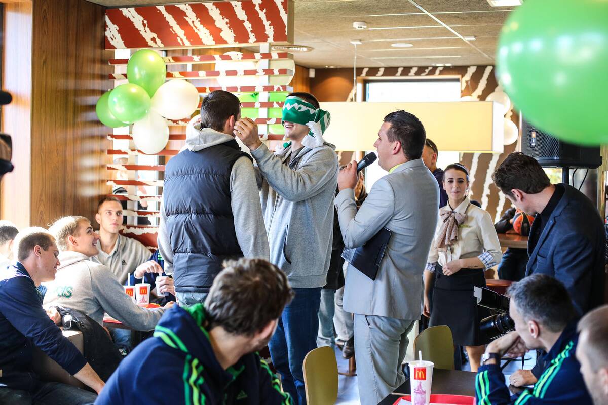 Vidurdienį į Kaune, Savanorių pr., esantį „McDonald‘s“ restoraną suvirto visa „Žalgirio“ komanda. Tą žalgiriečiai daro kiekvieną rudenį, prasidedant krepšinio sezonui, nes „McDonald‘s“ – vienas ištikimiausių komandos rėmėjų.
