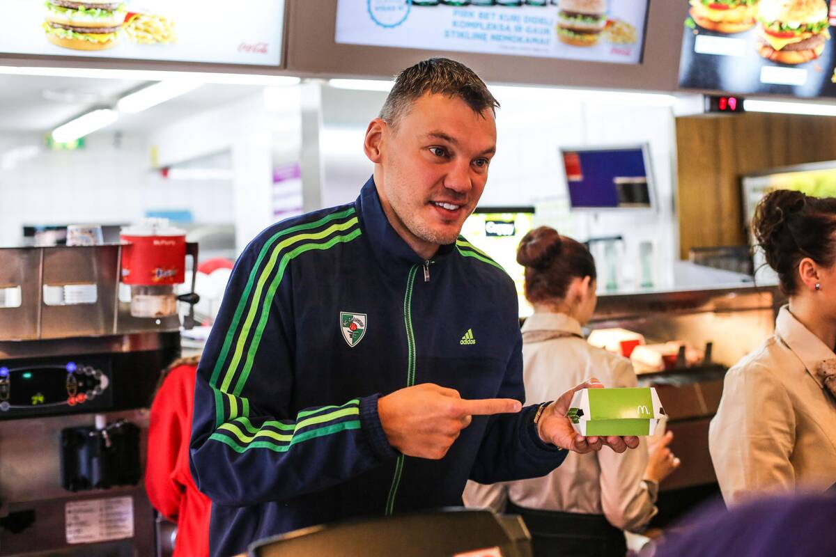 „Ko jūs norėsite? Komplekso? Didelio ar mažo?“, – klausinėjo šeštadienį už „McDonald‘s“ restorano prekystalio lyg žuvis vandenyje jautęsis Kauno „Žalgirio“ įžaidėjas Šarūnas Jasikevičius.