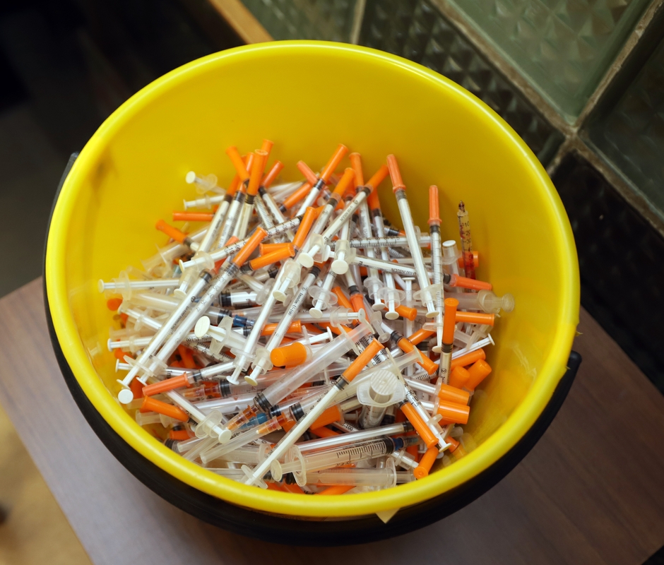 Surenka: į paramos fondą „Rigra“ narkomanai atneša tūkstančius panaudotų švirkštų, tad jie nesimėto viešose erdvėse. (Laimučio Brundzos nuotr.)