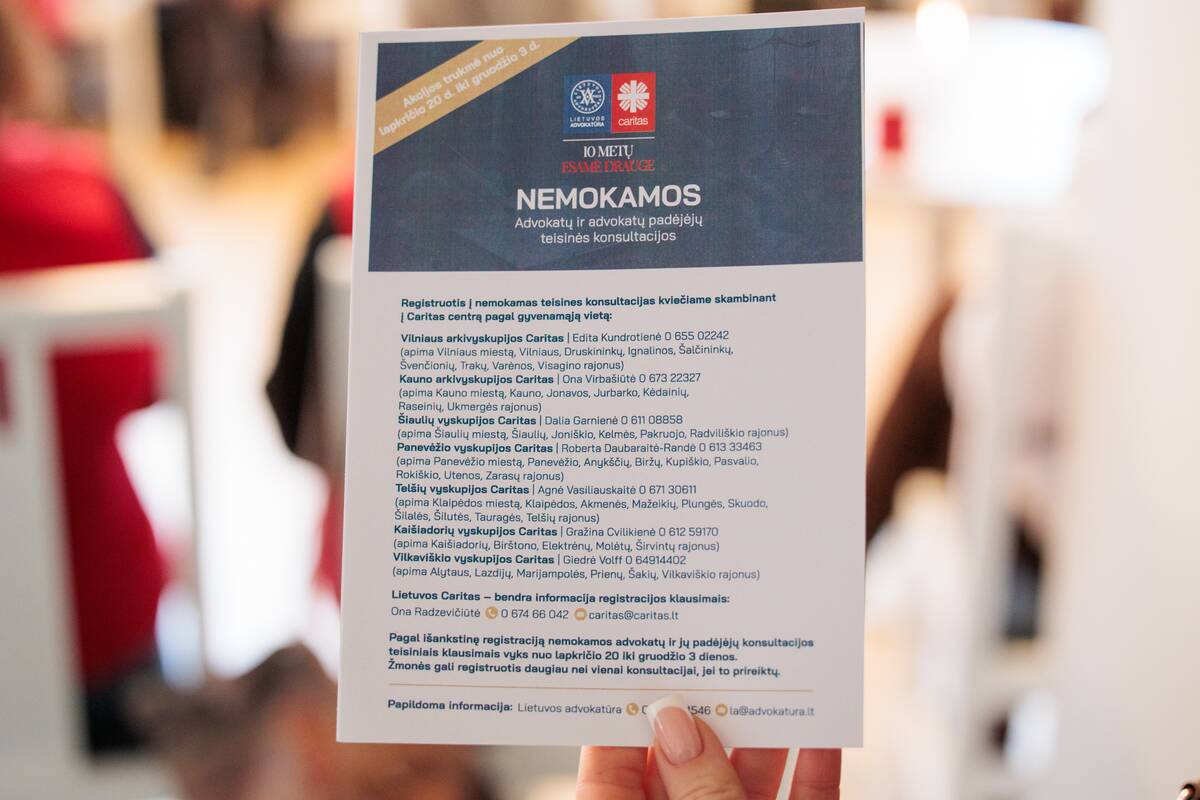 „Dešimtą kartą rengiama Advokatūros akcija – dovana ne tik gaunantiems „Carito“ pagalbą, bet ir mums visiems. Ji stiprina teisinį raštingumą ir mažina atskirtį, padėdama žmonėms išvengti skolų spąstų ar išnaudojimo padarinių. Dėkojame advokatams už jų laiką ir širdį – tai tikras socialinės atsakomybės pavyzdys, kuris primena: prieš priimant sprendimus, geriau pasitarti, kad vėliau nereikėtų kovoti su padariniais“, – sakė M. Žičkutė-Lindžienė.
