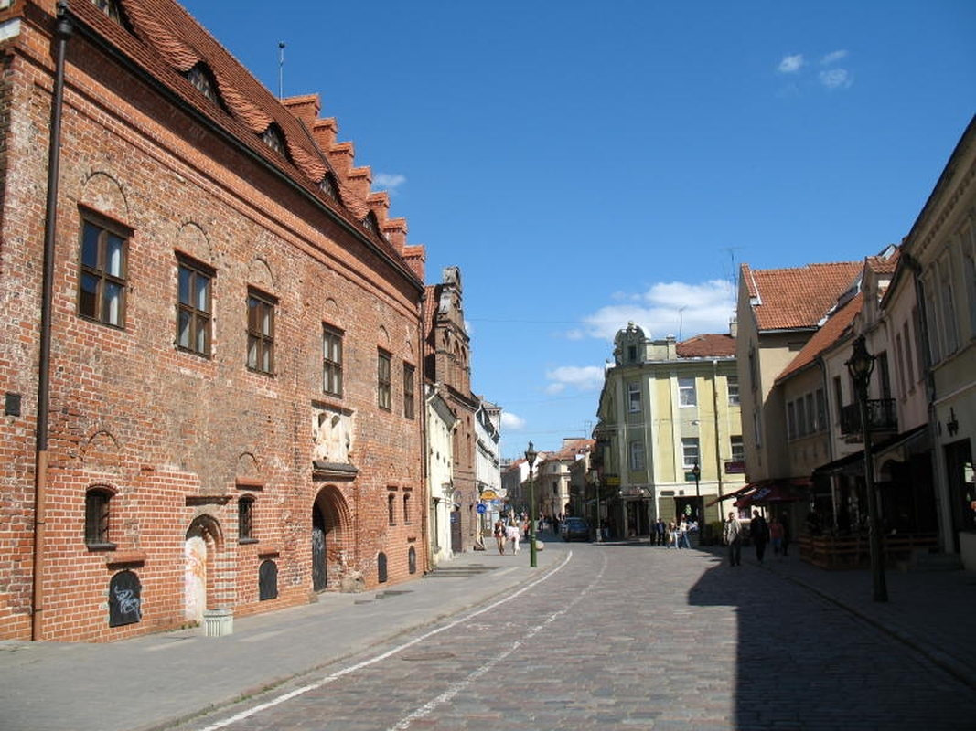 Iš pradžių Kauno senamiestyje stovėjo tik mediniai namai, kurie mūrinių didelių bažnyčių pašonėje atrodė skurdžiai, tačiau pamažu vieno aukšto medinius namus pradėjo keisti vieno–dviejų aukštų mūriniai pastatai. Dabartinė Vilniaus gatvė, istoriniuose dokumentuose vadinta Didžiąja Vilniaus gatve, šiandien neįsivaizduojama be akmeninio grindinio, tačiau netgi šis grindinys po savimi slepia dar senesnį – medinį – gatvės pamatą.
