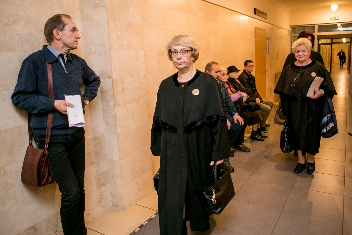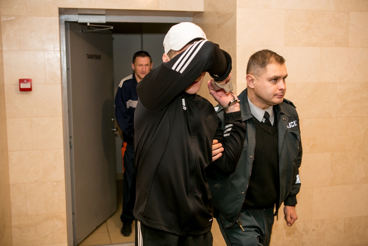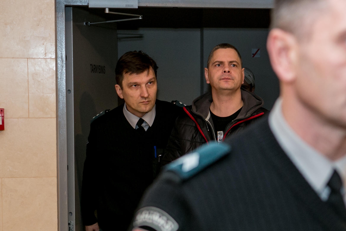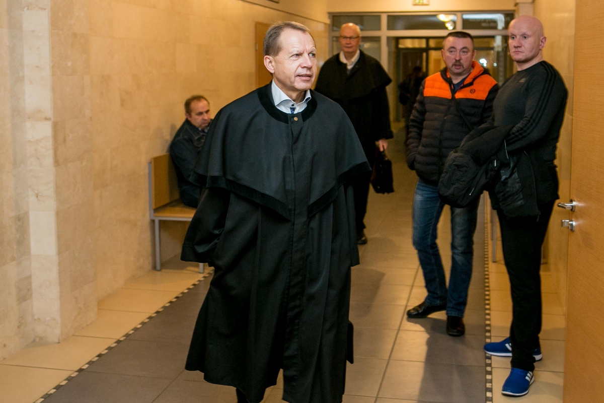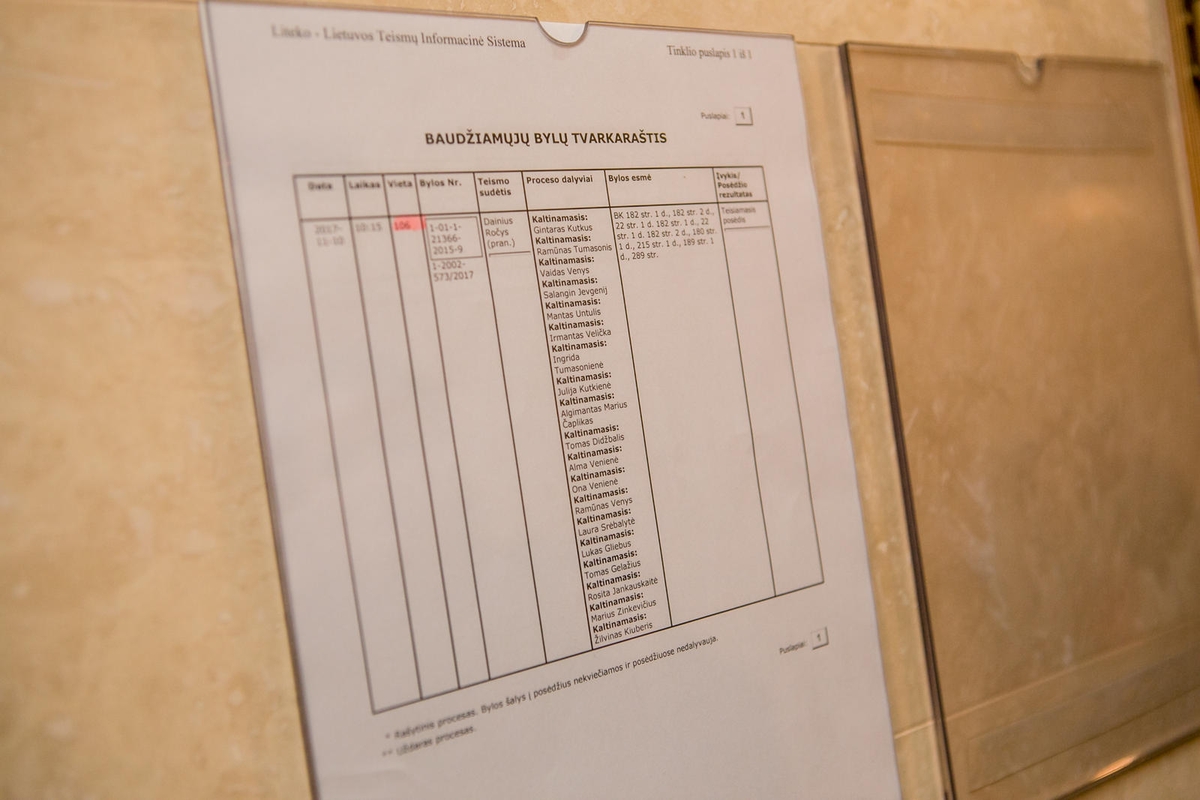 Kartu su juo į posėdį su antrankiais pristatyti dar keturi už grotų nuosprendžio laukiantys kaltinamieji netilpo į teismo salės narvą. Kaip ir pastarųjų bei laisvėje esančių teisiamųjų advokatai jiems skirtose vietose.