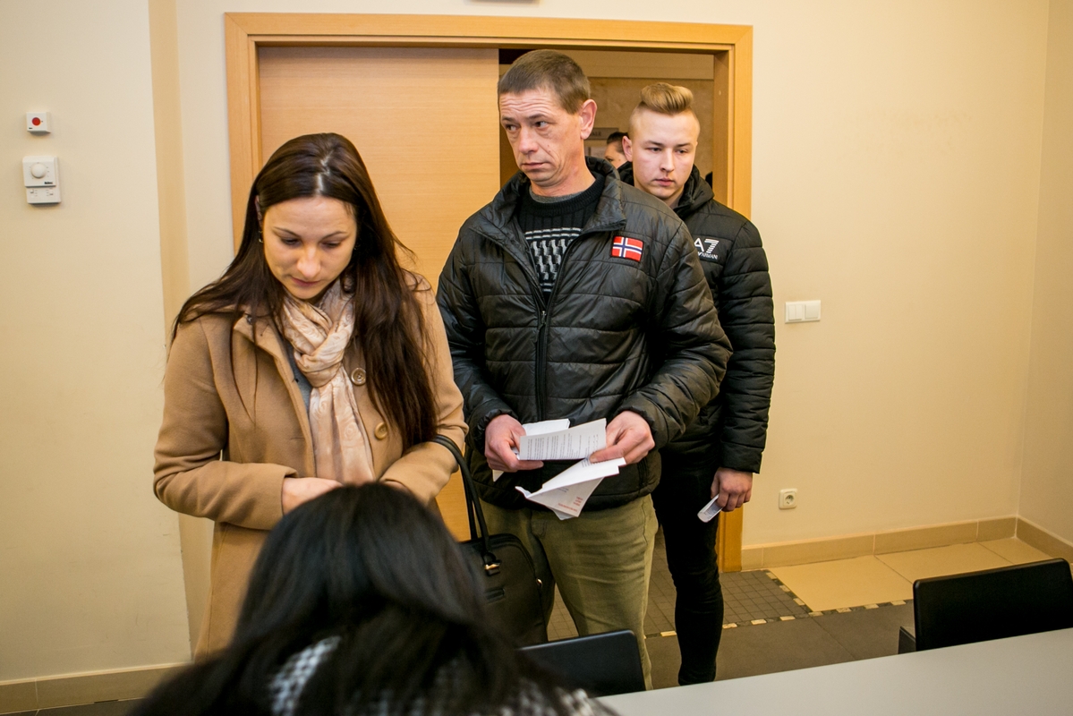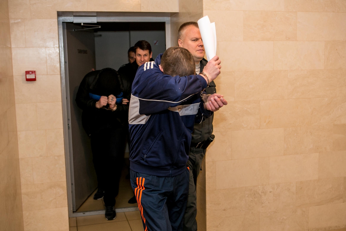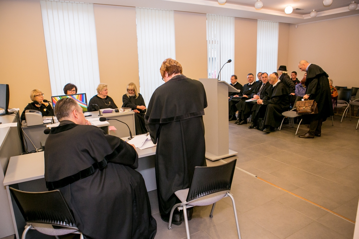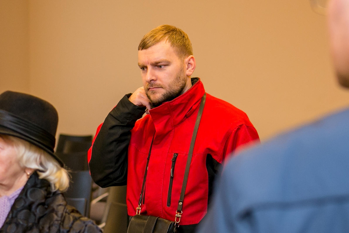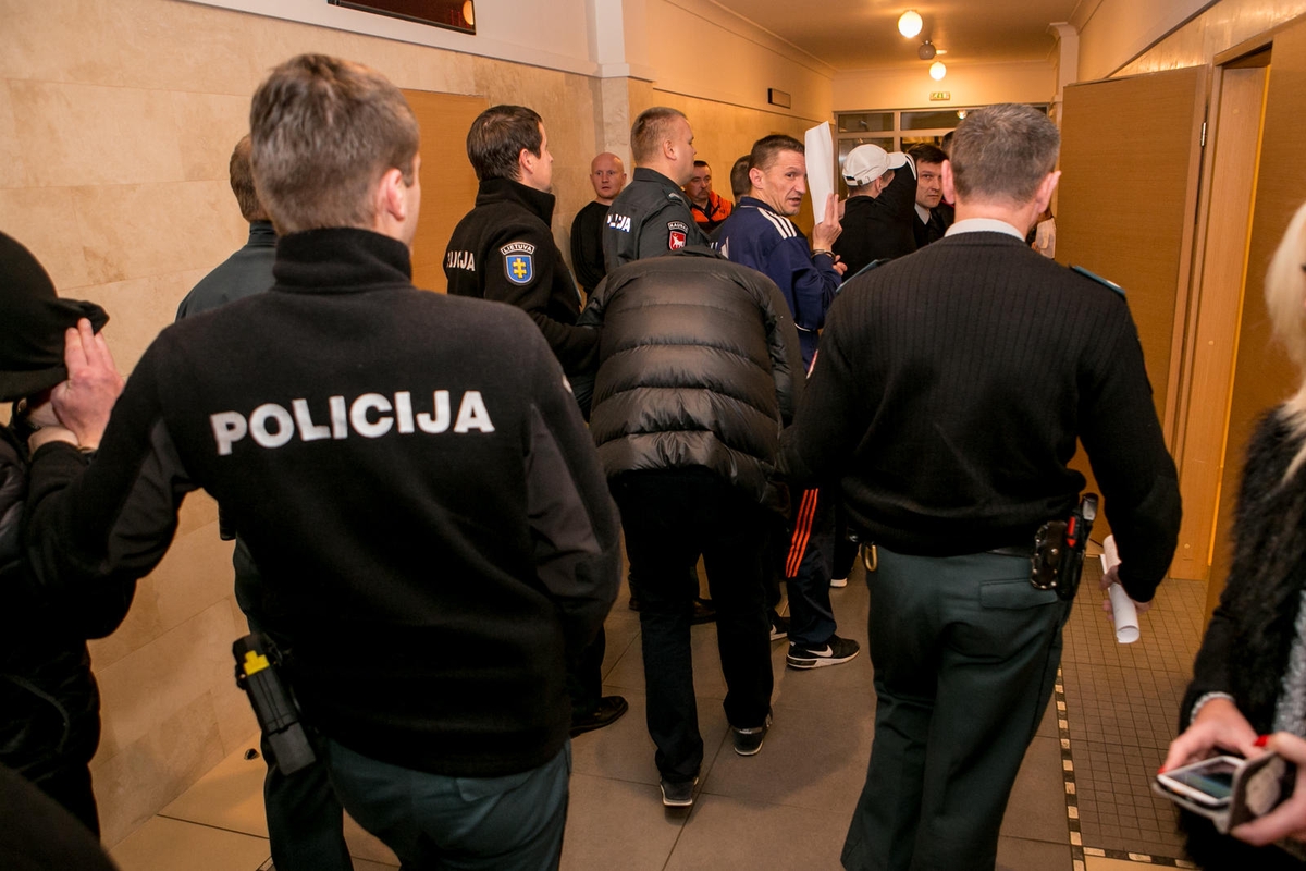 Kartu su juo į posėdį su antrankiais pristatyti dar keturi už grotų nuosprendžio laukiantys kaltinamieji netilpo į teismo salės narvą. Kaip ir pastarųjų bei laisvėje esančių teisiamųjų advokatai jiems skirtose vietose.