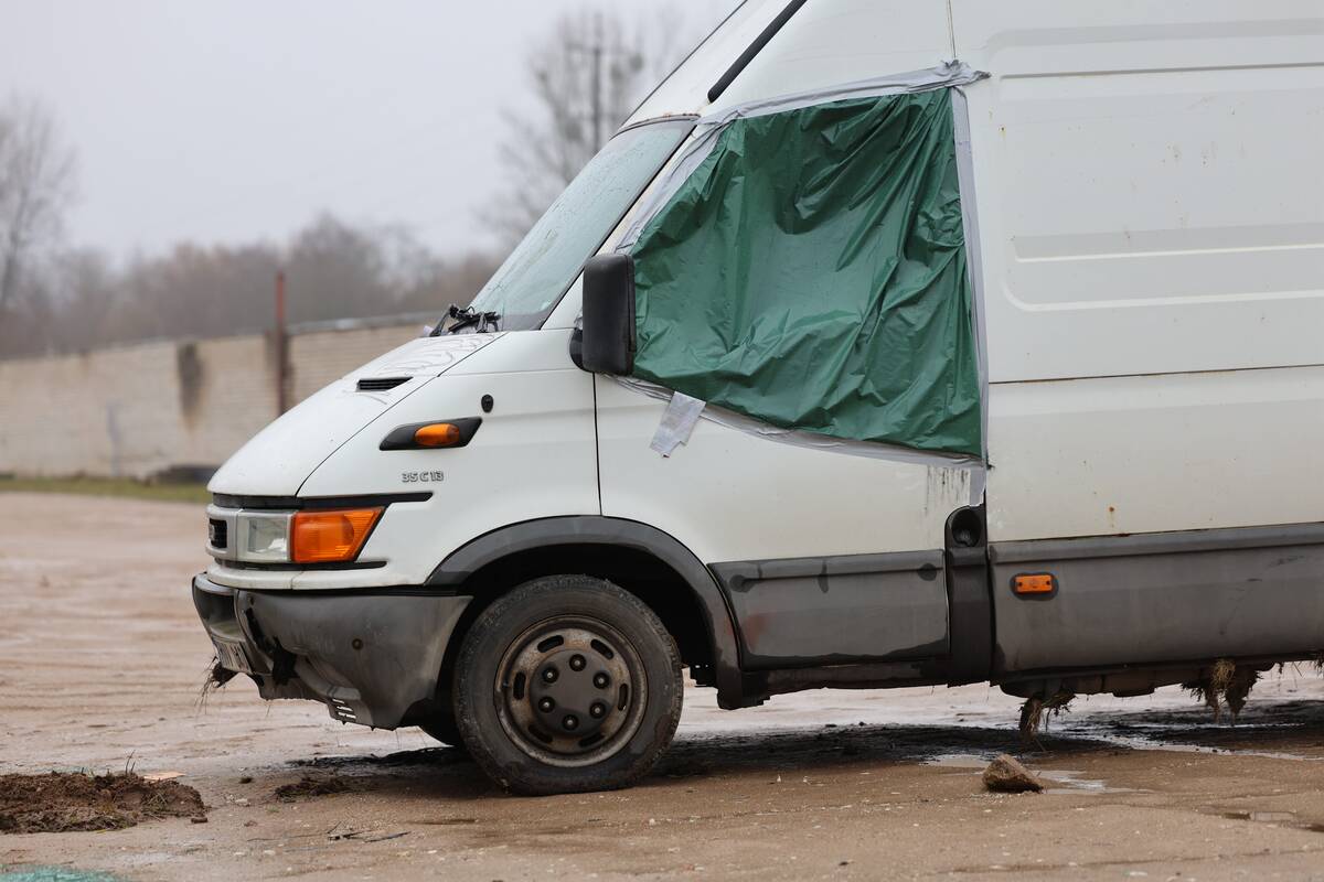 Stovėjimo aikštelėje stovi nemažai transporto priemonių. Tačiau visiems jiems išdaužyti stiklai, nulupti bamperiai, kai kurių – išplėštos kuro bako dangtelis, įlenktos keleivio durelės.