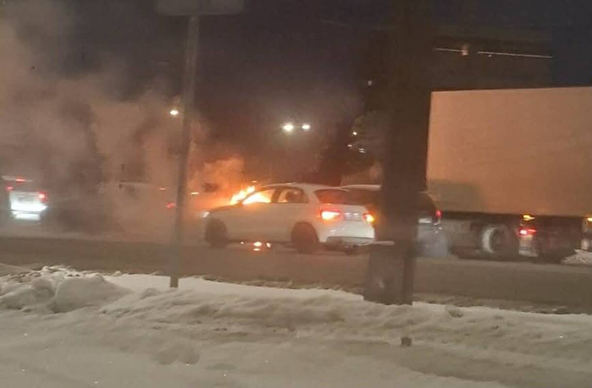 Buvo iškviesti ir pareigūnai, nes reikėjo nuo kelio patraukti apdegusią transporto priemonę.