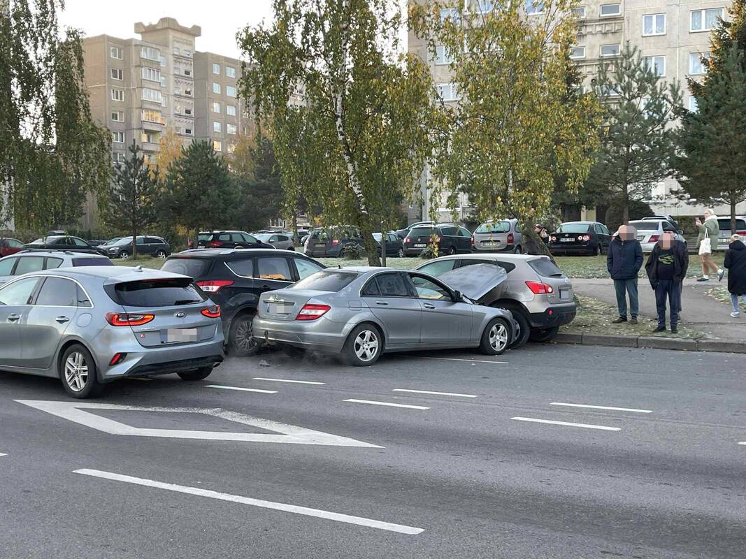 Pirmadienio rytą Šilainiuose esančioje Kuršių g. susidūrė du automobiliai. Nuo smūgio, kaip matoma nuotraukose, apgadintas ir trečias kelkraštyje stovėjęs automobilis.