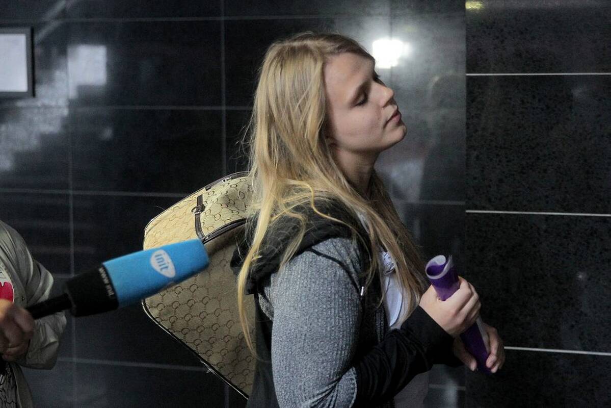 Kaltinamoji savo naujagimio nužudymu buvo su iškalbingu krepšiu, didesniu už moterišką rankinę. Tačiau neatsakė į gausiai susirinkusios žiniasklaidos klausimą, kokio teismo sprendimo tikisi. "Nieko nekomentuok!" – liepė jai mama.