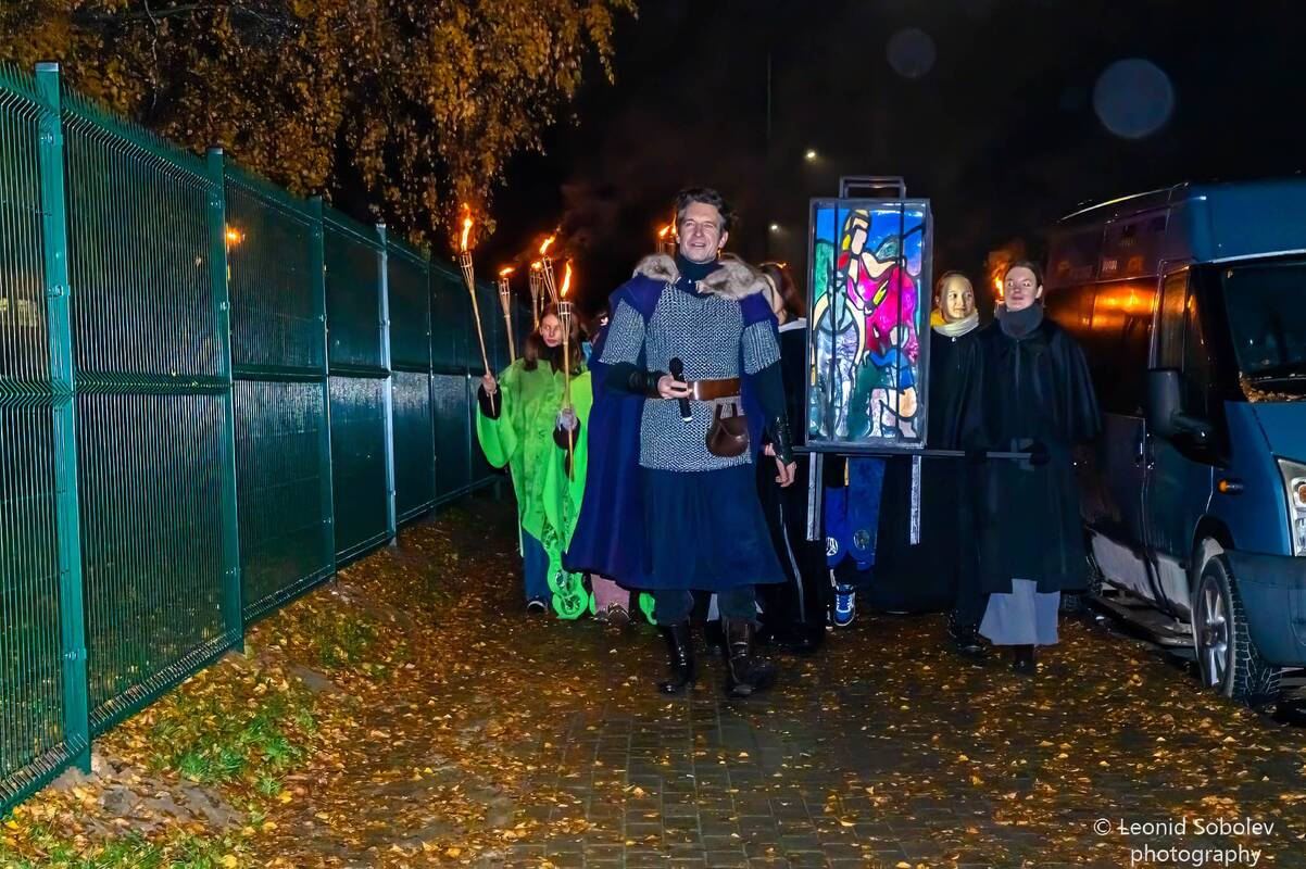 Vedlys: eisenos priekyje žygiavo šv. Martynu tapęs aktorius K. Makauskas.
