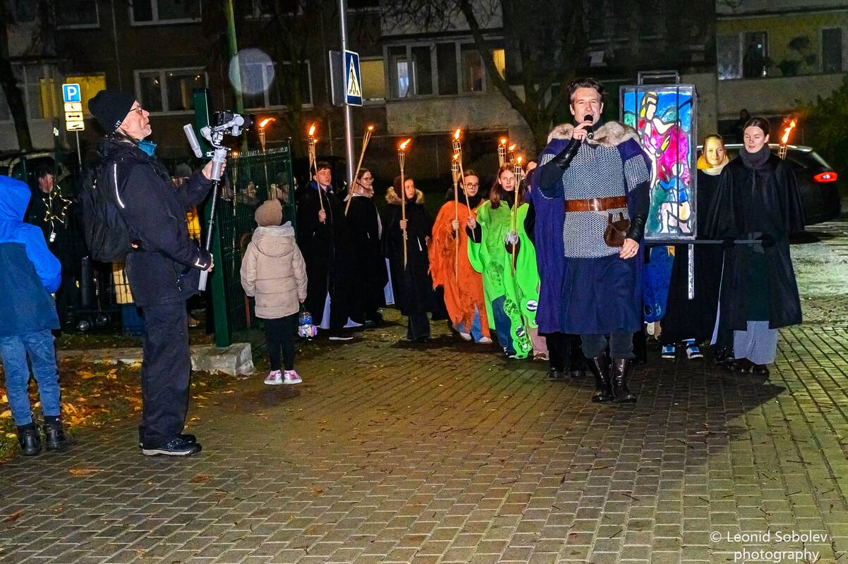 Eisenos priekyje žygiavo S. Dacho progimnazijos teatro klasės mokytojas aktorius Karolis Makauskas, jau ne viename renginyje suvaidinęs šv. Martyną.