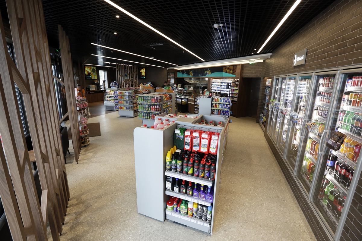 Atsinaujinusios degalinės parduotuvės plotas siekia 135 m2. Degalinės atnaujinimas lietuviško kapitalo įmonei atsiėjo virš 600 000 eurų.