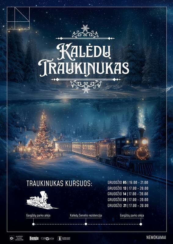 Tuo pat metu parke nemokamai kursuos kalėdinis traukinukas – vienas mylimiausių vaikų šventinio laikotarpio akcentų. Traukinukas veš maršrutu nuo Gargždų parko alėjos iki Kalėdų Senelio rezidencijos ir atgal.