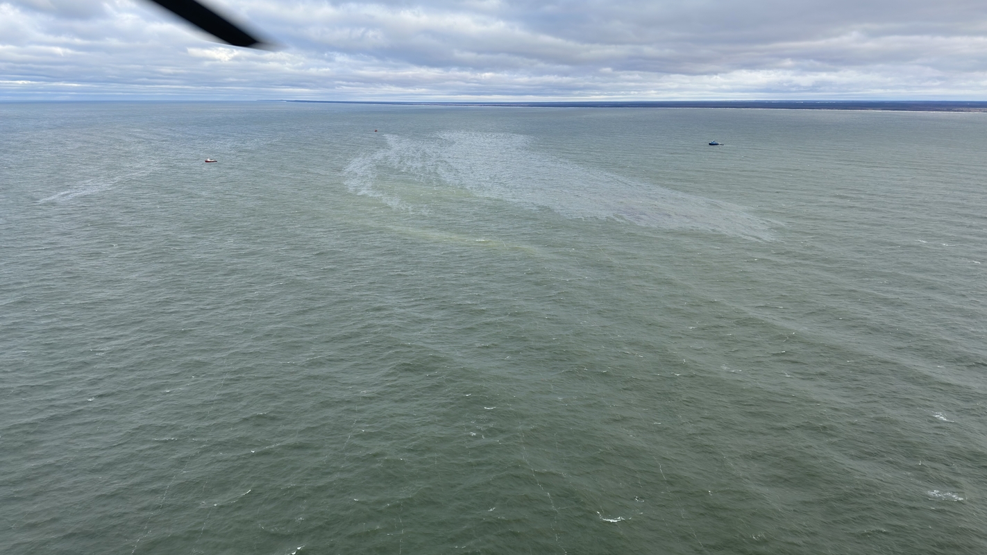 Antradienį AAD Jūros aplinkos apsaugos skyrius, pasinaudodamas Lietuvos kariuomenės Karininių oro pajėgų budinčiu paieškos ir gelbėjimo sraigtasparniu, atliko pirminę taršos incidento vandenyje žvalgybą iš oro: įvertinti naftos produktų šleifo parametrai ir dreifavimo kryptis. Įvertinus pirminius duomenis, papildomai pasitelkiant gautas Europos jūrinio saugumo agentūros (angl. EMSA CleanSeaNet) palydovines nuotraukas, nustatyta, kad naftos dėmė yra maždaug 9 kilometrų ilgio ir 2 kilometro pločio, ji pasklidusi į pietryčius nuo Būtingės terminalo.