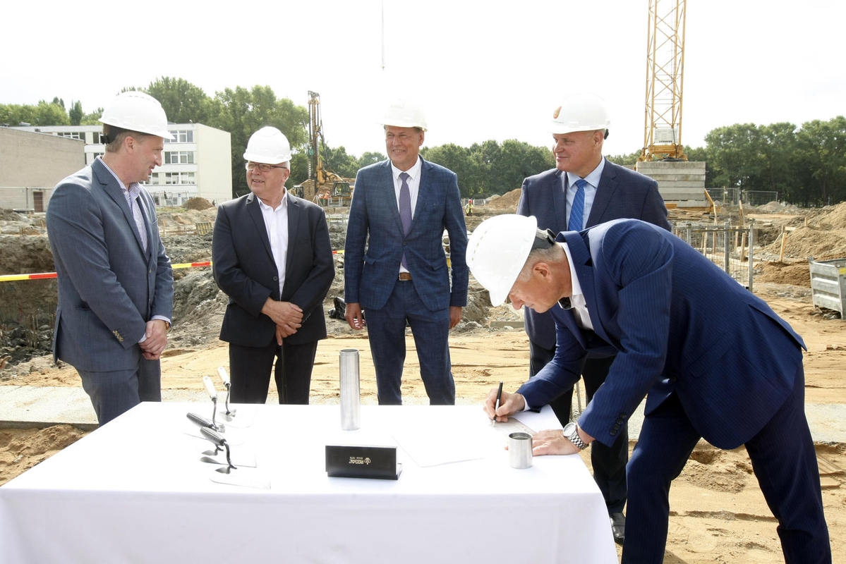 "Žengtas milžiniškas žingsnis Klaipėdos futbolo mokyklos ir baseino pastato link. Prasidėjo atnaujinimo darbai. Didžiuojamės prisidėdami prie uostamiesčio naujų sporto bazių statybos ir Lietuvos ekonominės plėtros projektų", – parašyta laiške, kuriame pasirašė miesto vadovai bei PST direktorius.