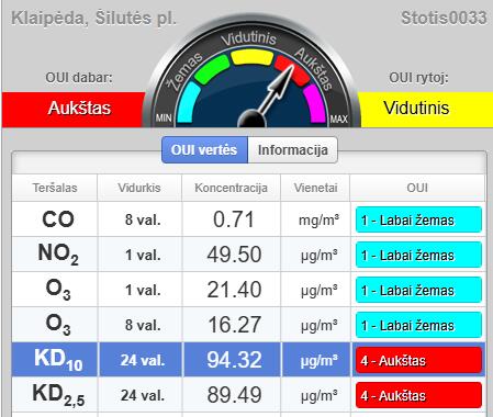 Remiantis Aplinkos apsaugos agentūros (AAA) pateiktais duomenimis, Klaipėdos centre kietųjų dalelių KD10 paros ribinė vertė nebuvo viršyta, tačiau Šilutės plente šiuo metu fiksuojama aukšta oro tarša. Kietųjų dalelių KD10 paros vidurkis pasiekė 94,32 koncentraciją, o tai žymiai viršija normą, kuri yra 50.