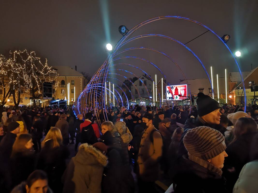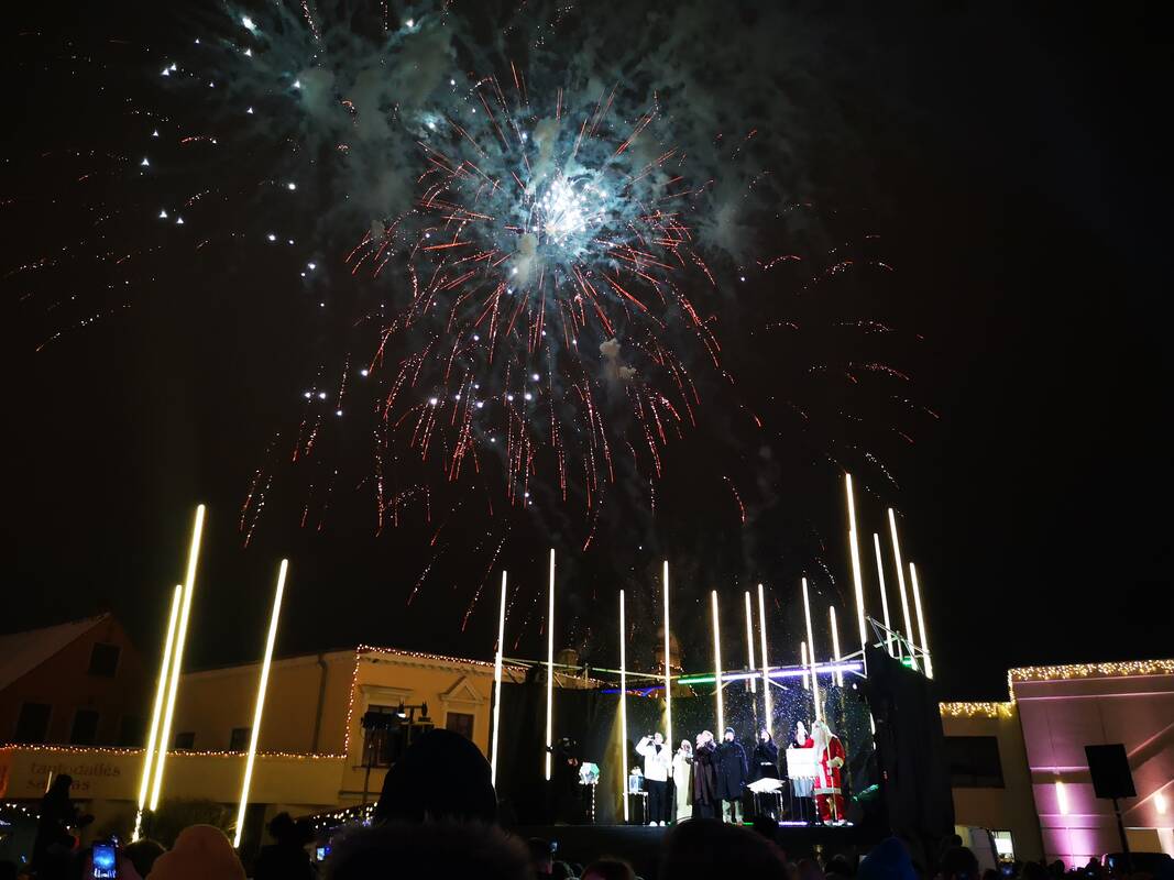 Eglutės įžiebimas palydėtas Kalėdų Senelio vizitu ir muzikos garsais.