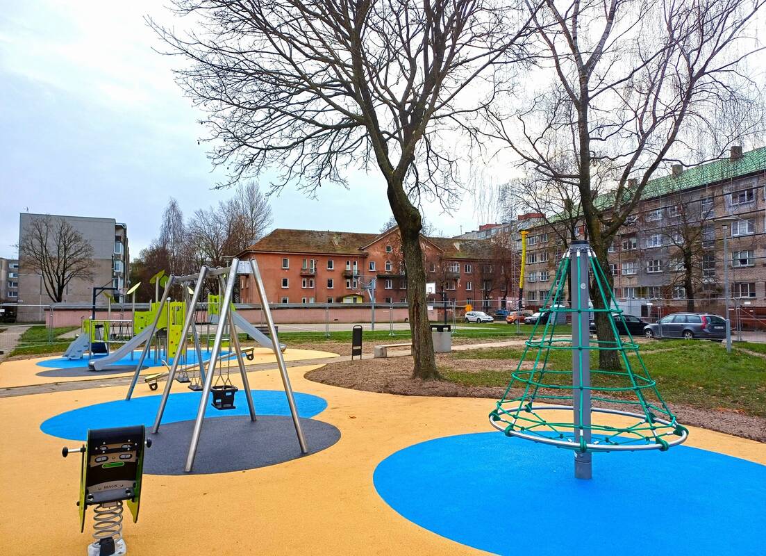Klaipėdos miesto savivaldybė pranešė, kad Minijos gatvėje 129 įrengta vaikų žaidimų aikštelė.