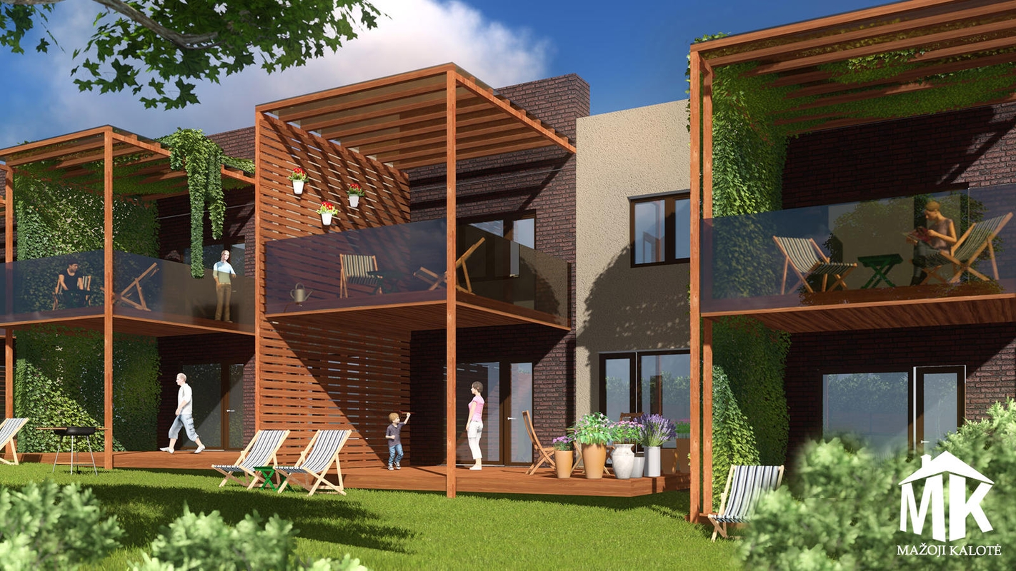 Kai kuriuose dvibučiuose namuose bus įrengtos ir lauko terasos.