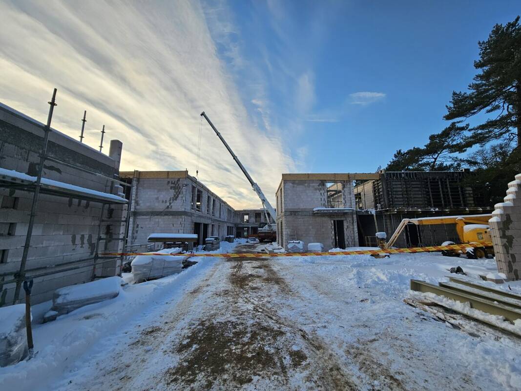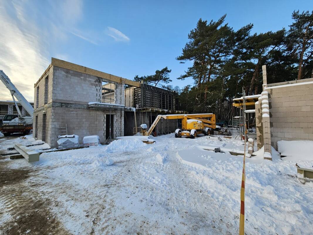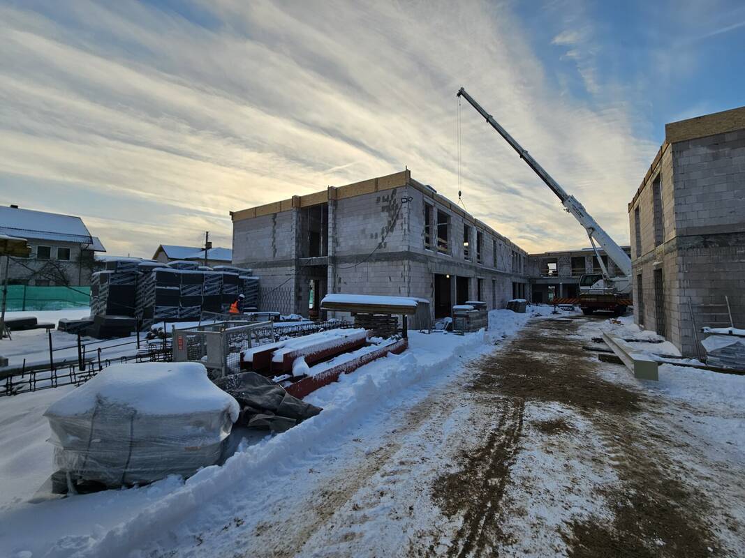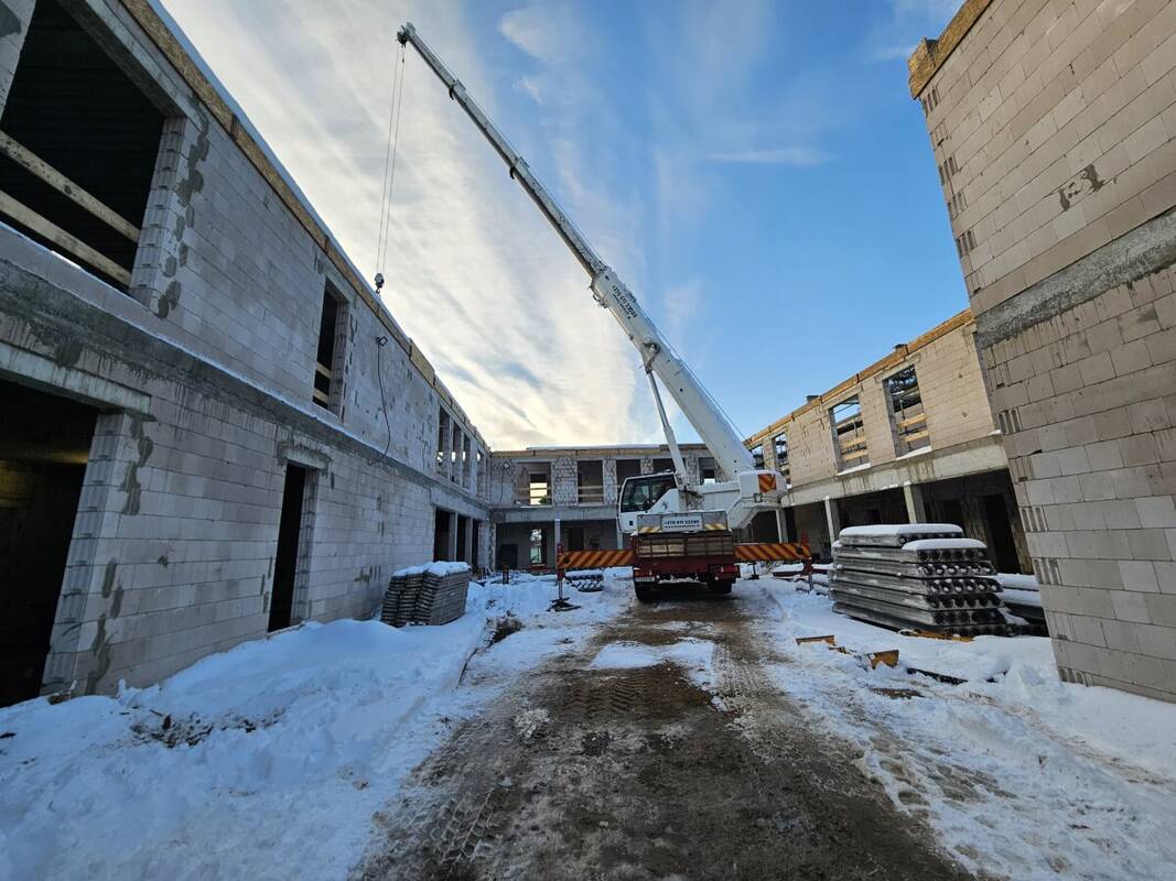 Teritorijoje gręžiami geoterminio šildymo gręžiniai, netrukus į statybvietę turėtų atkeliauti užsakyti liftai, langai bei stogo konstrukcijos.