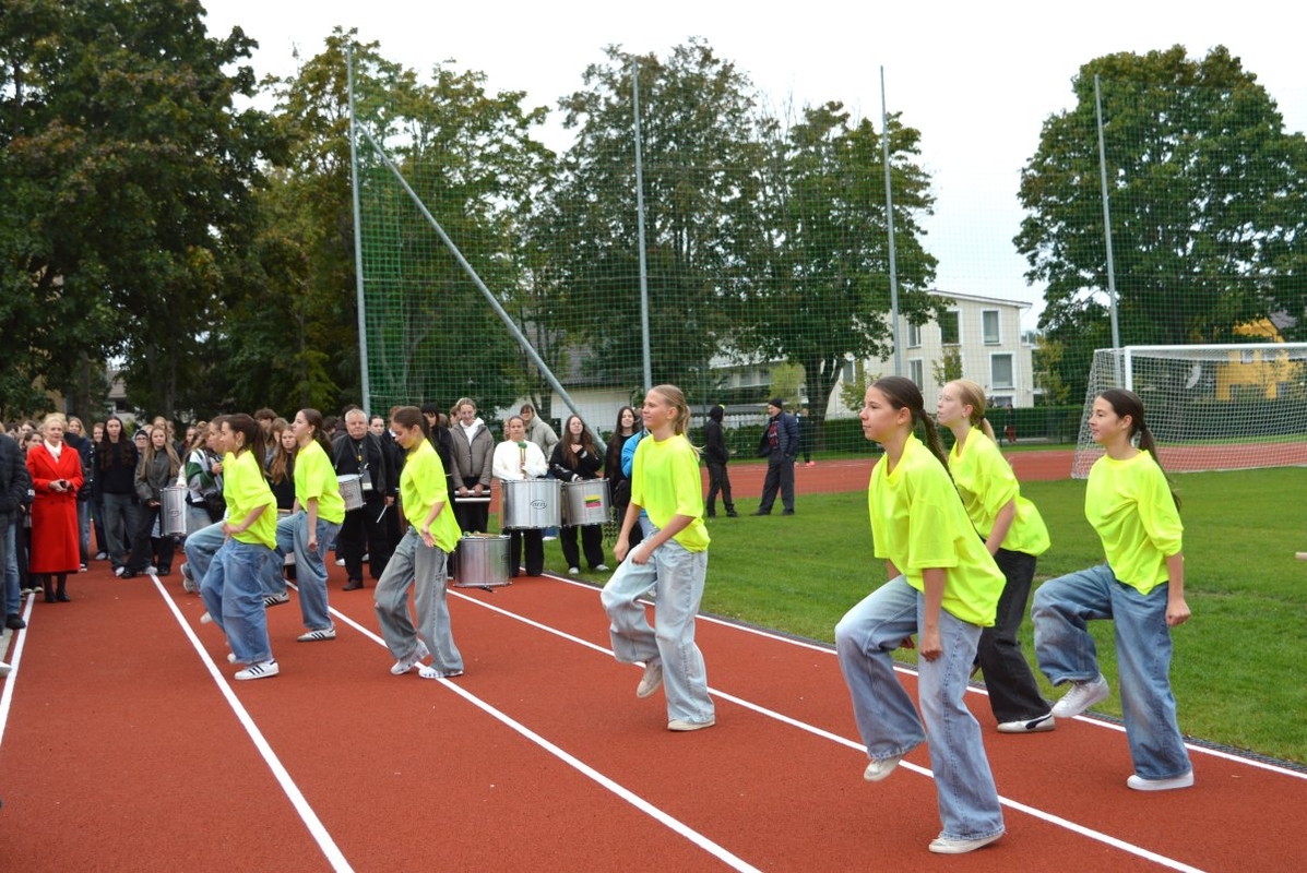 Bėgimo takuose su rutulio stūmimo bei šuolio į tolį sektoriais paklota guminė sportinė danga, įrengti specialūs sportiniai paviršinio vandens surinkimo latakai. Stadionas apjuostas tvora, užtikrinančia mokinių saugumą.