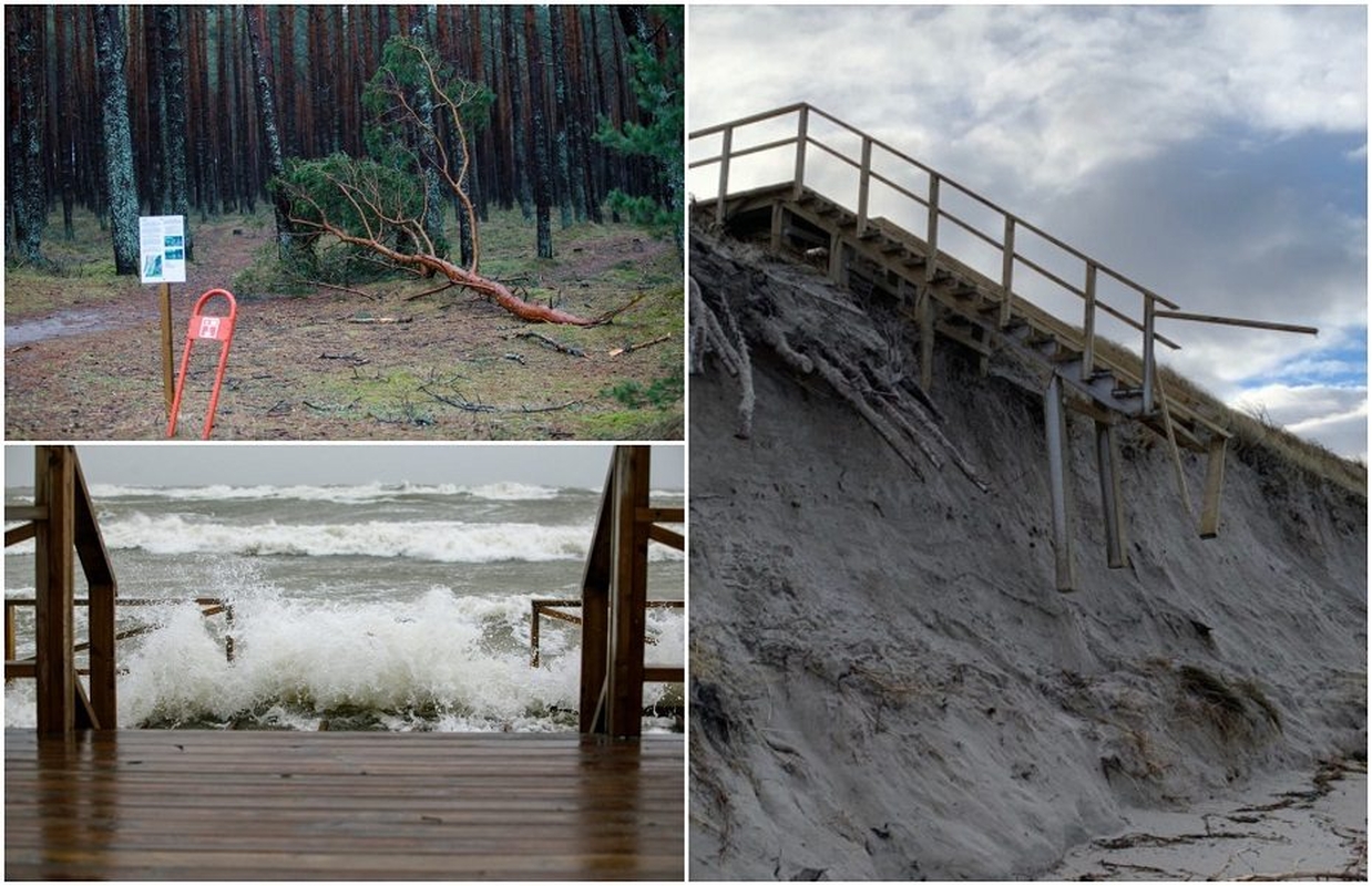„Išardyti mediniai takai, laiptai, apžvalgos aikštelė, sporto treniruokliai, iš paplūdimio nuneštas smėlis, atidengti vandens tiekimo tinklai. Žalos daug, bet skaičiai dar neaiškūs“, – pasakojo bendrovės „Klaipėdos paplūdimiai“ direktorius Olegas Mariničius.