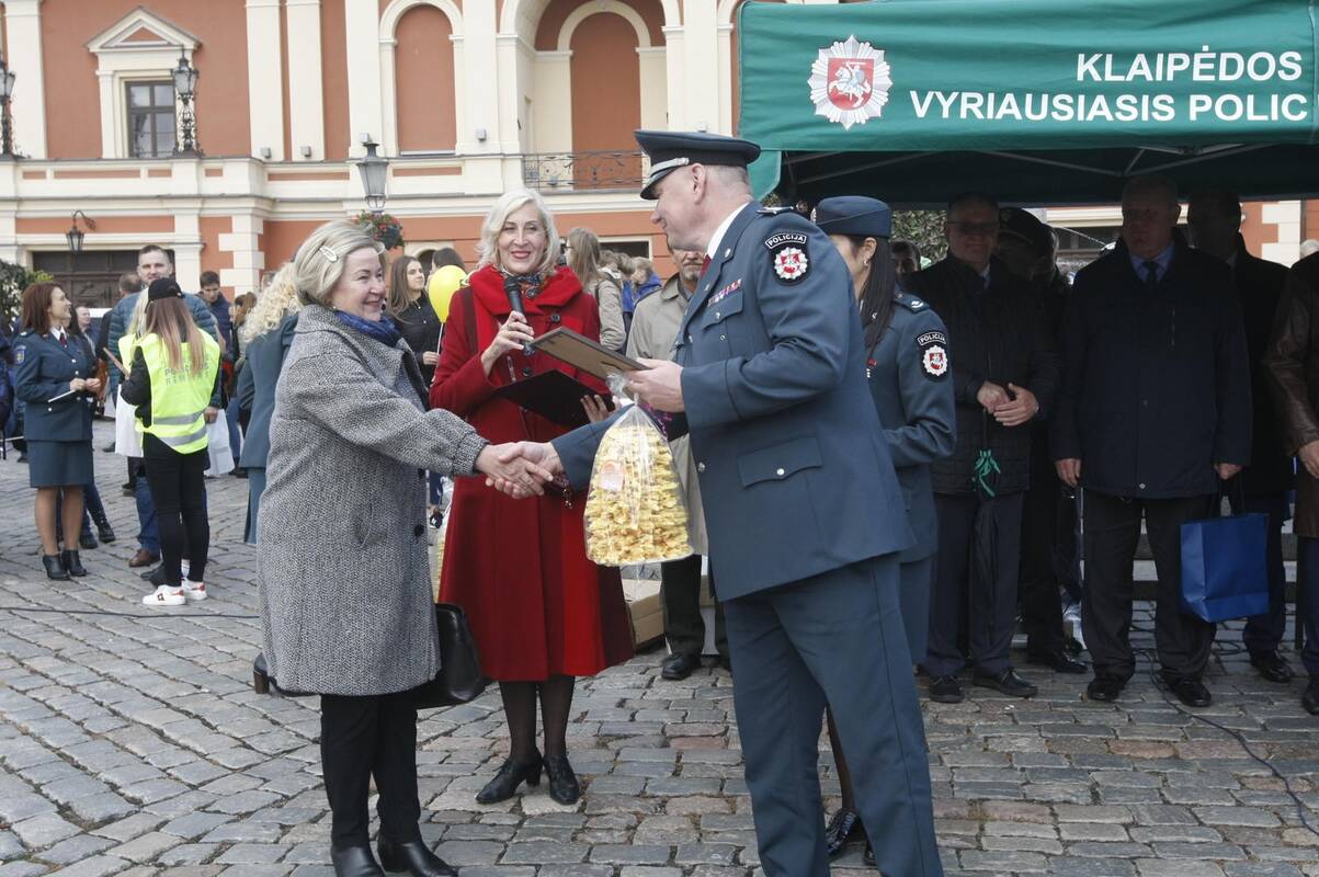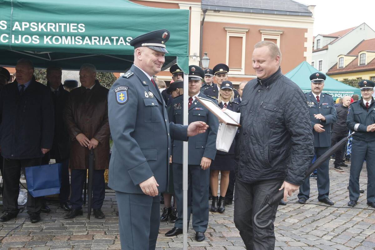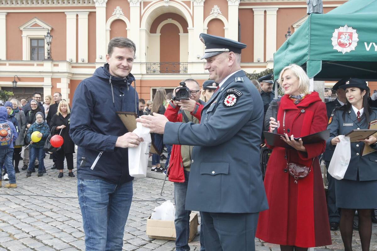 Aikštėje buvo nemažai vaikų. Jie smalsavo, kaip dirba pareigūnai, klausinėjo apie policininkų kasdienybę, lietė ginklus, apžiūrinėjo automobilius, norėjo paglostyti tarnybinį šunį, tačiau kinologas leido tik stebėti savo augintinį.