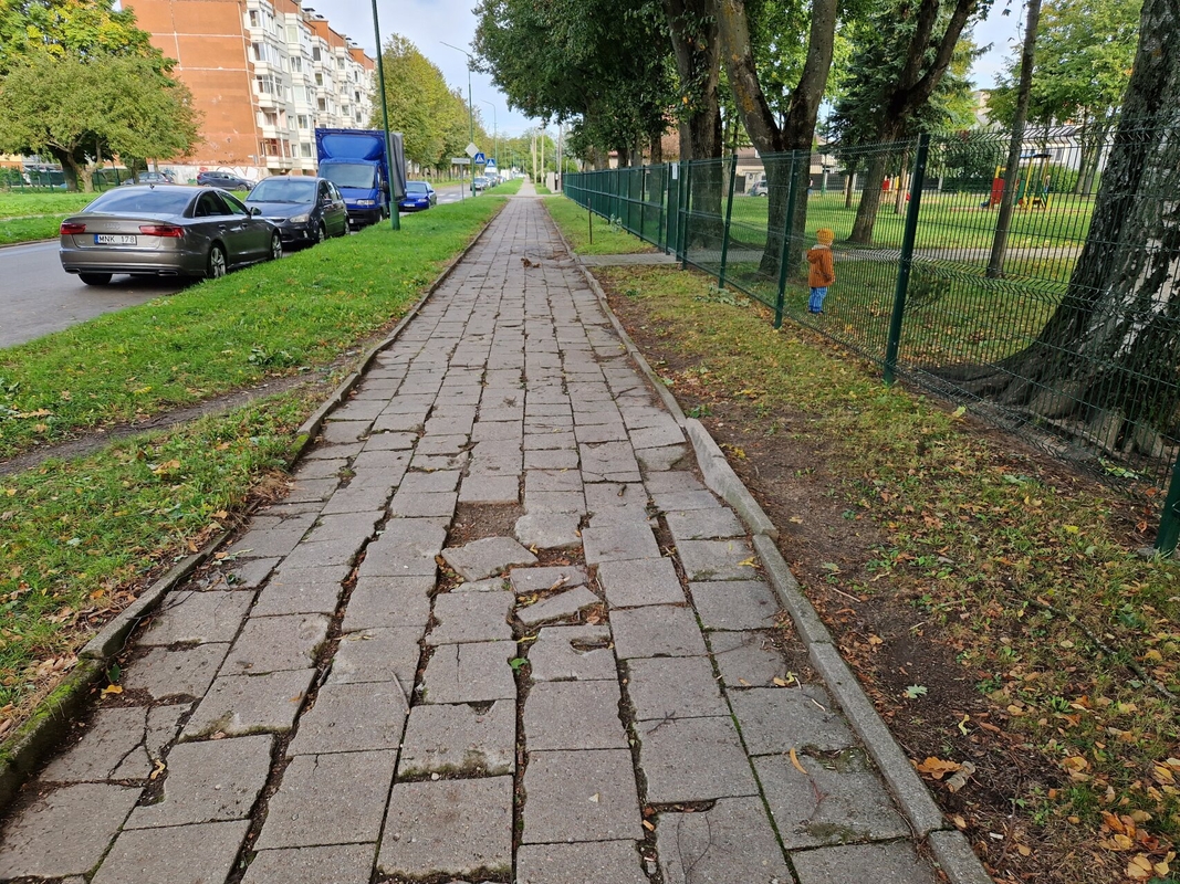 Šiaurinėje miesto dalyje jau suremontuota daugiau nei 5 tūkst. m2 susidėvėjusių šaligatvių atkarpų: Karklų g. (115 m2), Tilžės g. (371 m2), Danės g. (207 m2), Bangų g. (1362 m2), Liepų g.(218 m2), Miško g. (440 m2), Įgulos g. (430 m2) ir kt.