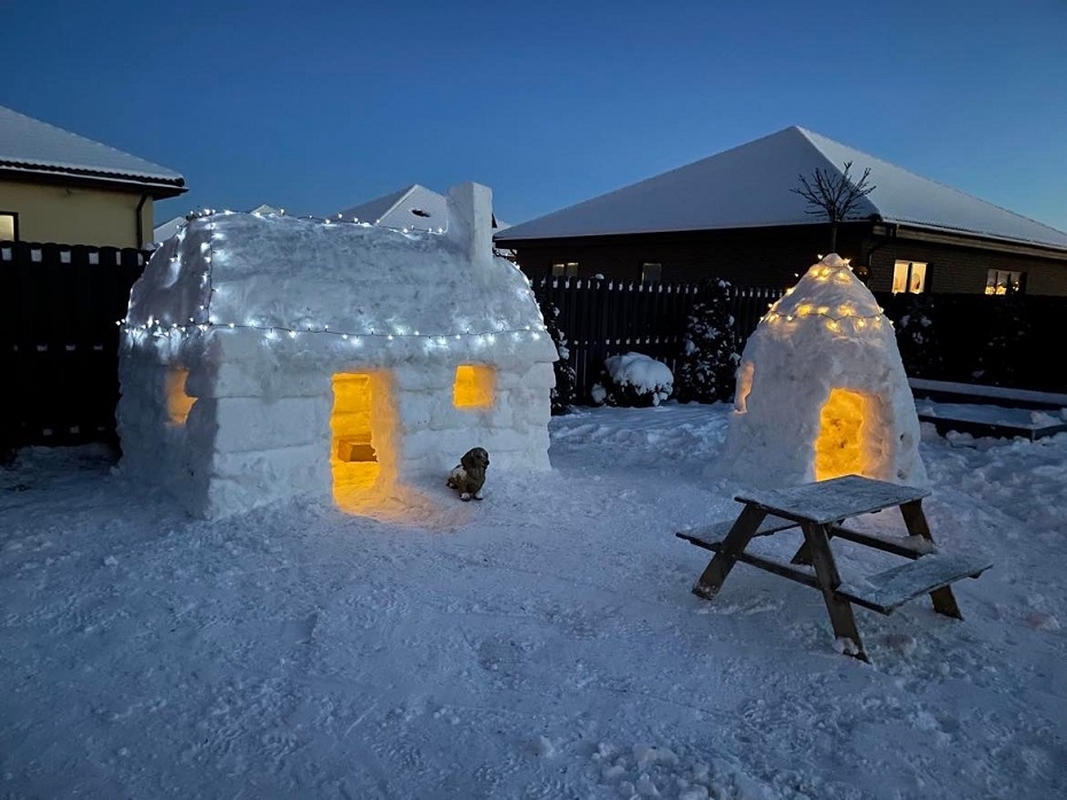 Kalotiškis ir pernai iš sniego statė namelį, o tuo liko sužavėta visa vyro šeima. Pernai sniego statiniu ypač džiaugėsi vaikai, nes jame buvo įrengtas kalniukas, vaikų čiuožinėjimui.