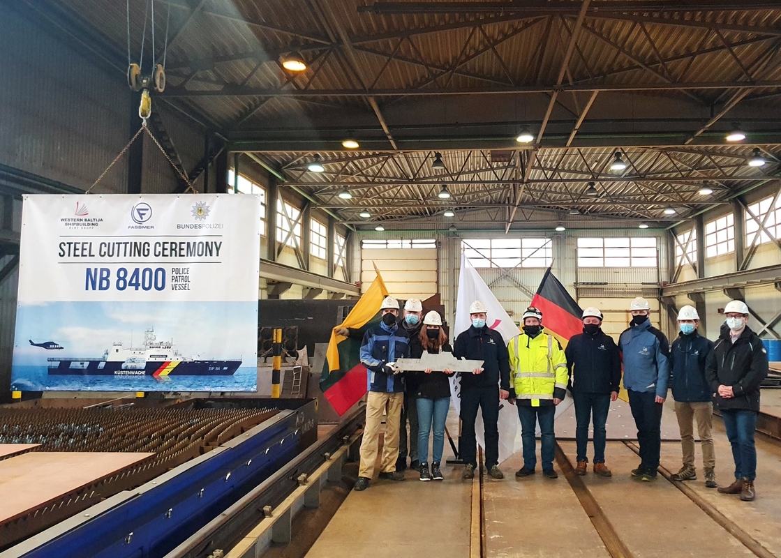 Simbolinė plieno pjovimo ceremonija jau įvyko ir VBLS komanda, padedama didžiosios dalies kitų VLG grupei priklausančių įmonių, pradėjo laivo statybą.