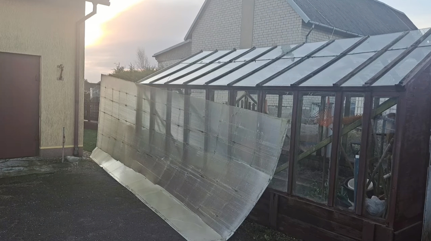 Skrydis: Ginduliuose vėjas nuplėšė terasos stogą. Feisbuko paskyros „Gindulių bendruomenė“ nuotr.