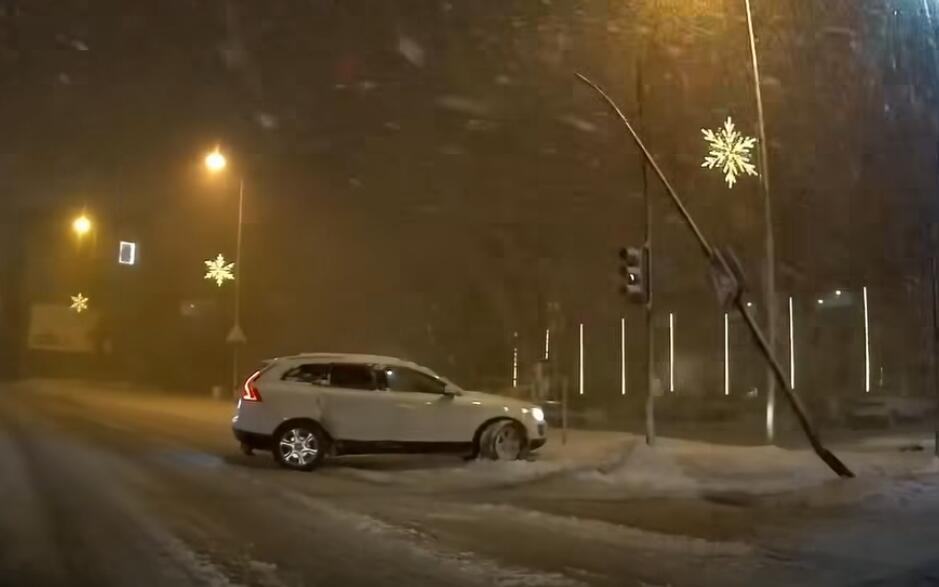 Kitas eismo įvykis vaizdo registratoriumi nufilmuotas Naujojo Sodo ir Naujosios Uosto gatvių sankryžoje – įraše matyti nulinkęs kelio ženklas ir kelyje sustojęs lengvasis automobilis.