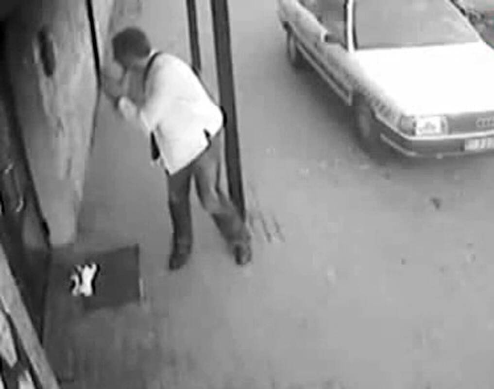 Netrukus jaunasis lankytojas nuvertė vyrą nuo kėdės ir pradėjo šiurpią egzekuciją. Jis ne spardė žmogų, o iš viršaus į apačią kilnodamas koją talžė jo galvą.