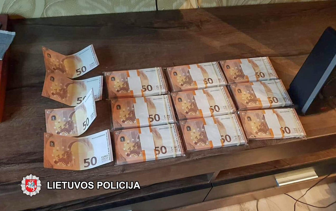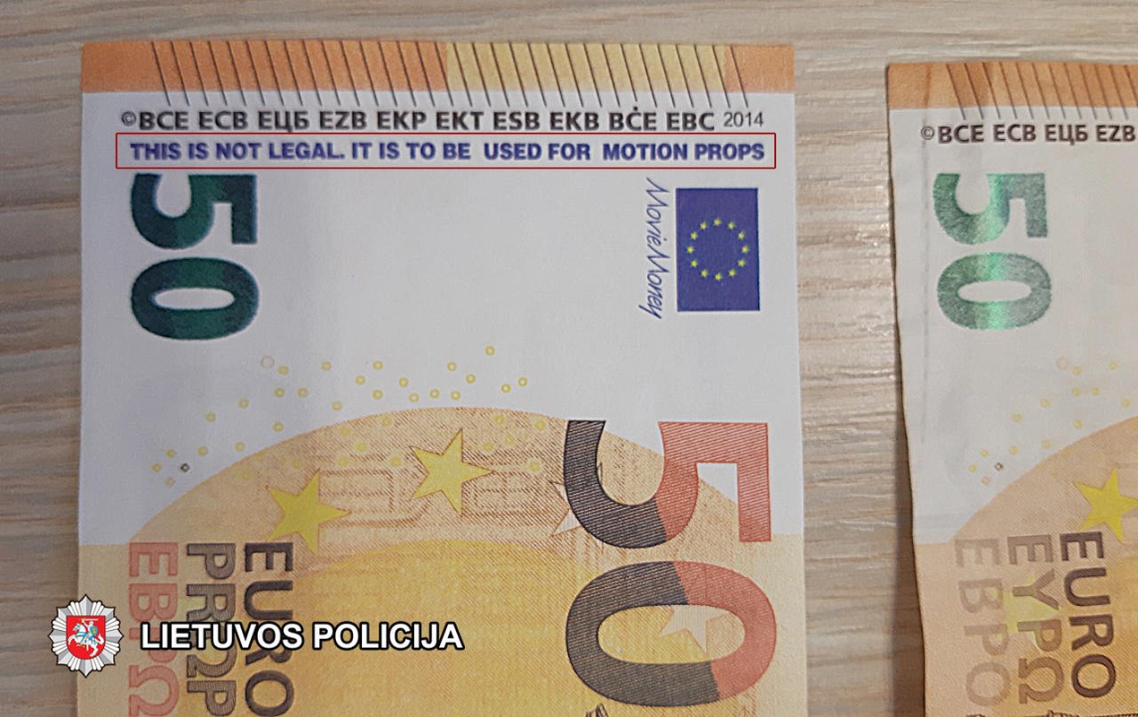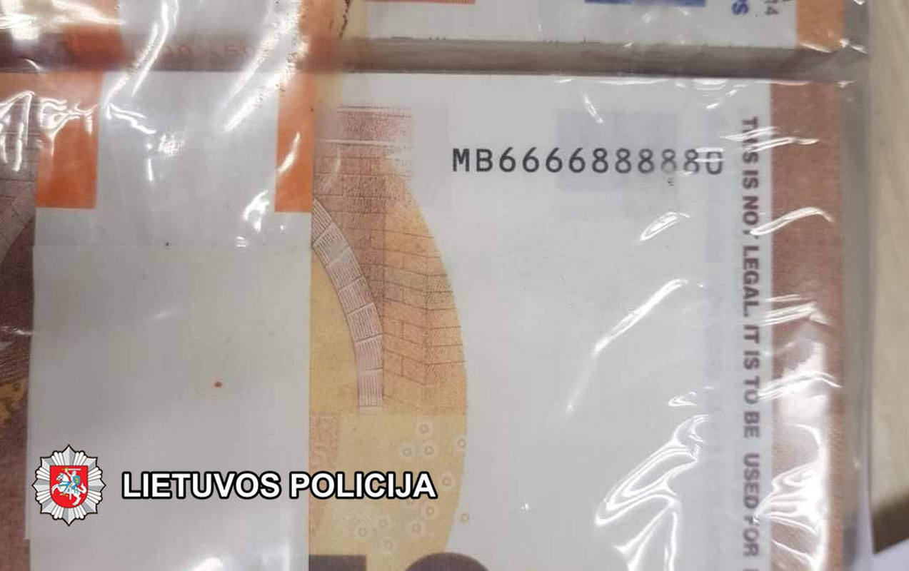 Per kratą įtariamojo bute Naujojoje Akmenėje pareigūnai aptiko 904 penkiasdešimties eurų nominalo kupiūras su akivaizdžiais padirbimo požymiais – visų banknotų numeriai visiškai vienodi – MB6666888880, o ant pačių kupiūrų anglų kalba pažymėta, jog jie neskirti teisėtam naudojimui.