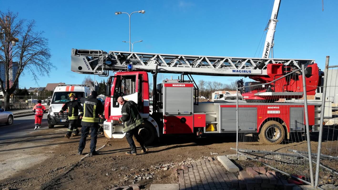 Padėjo ugniagesių kranas, juo sąmonės nepraradęs vyras nukeltas nuo konstrukcijos ir perkeltas į greitosios medicinos pagalbos automobilį.