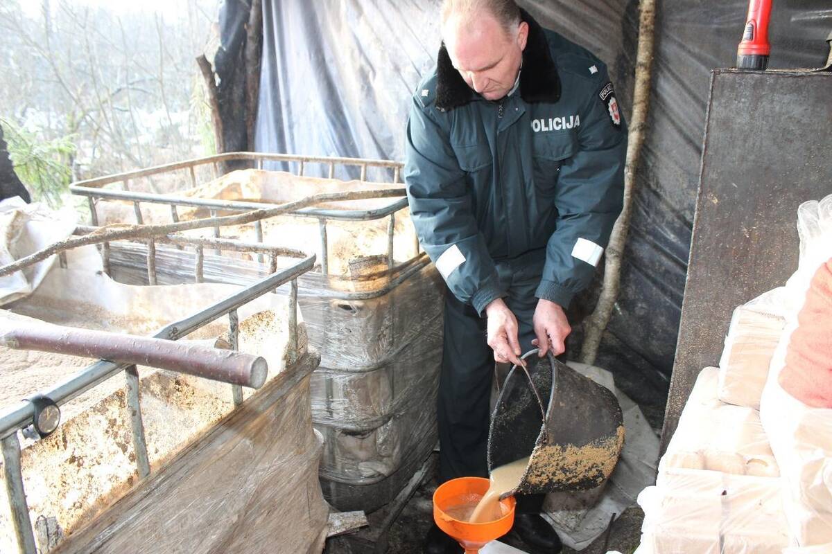 Jį sulaikius ir nusekus į miško tankmę, iš kurios ir pastebėtas išvažiuojantis automobilis, aptikta ir gabento neteisėto alkoholio gamybos vieta.