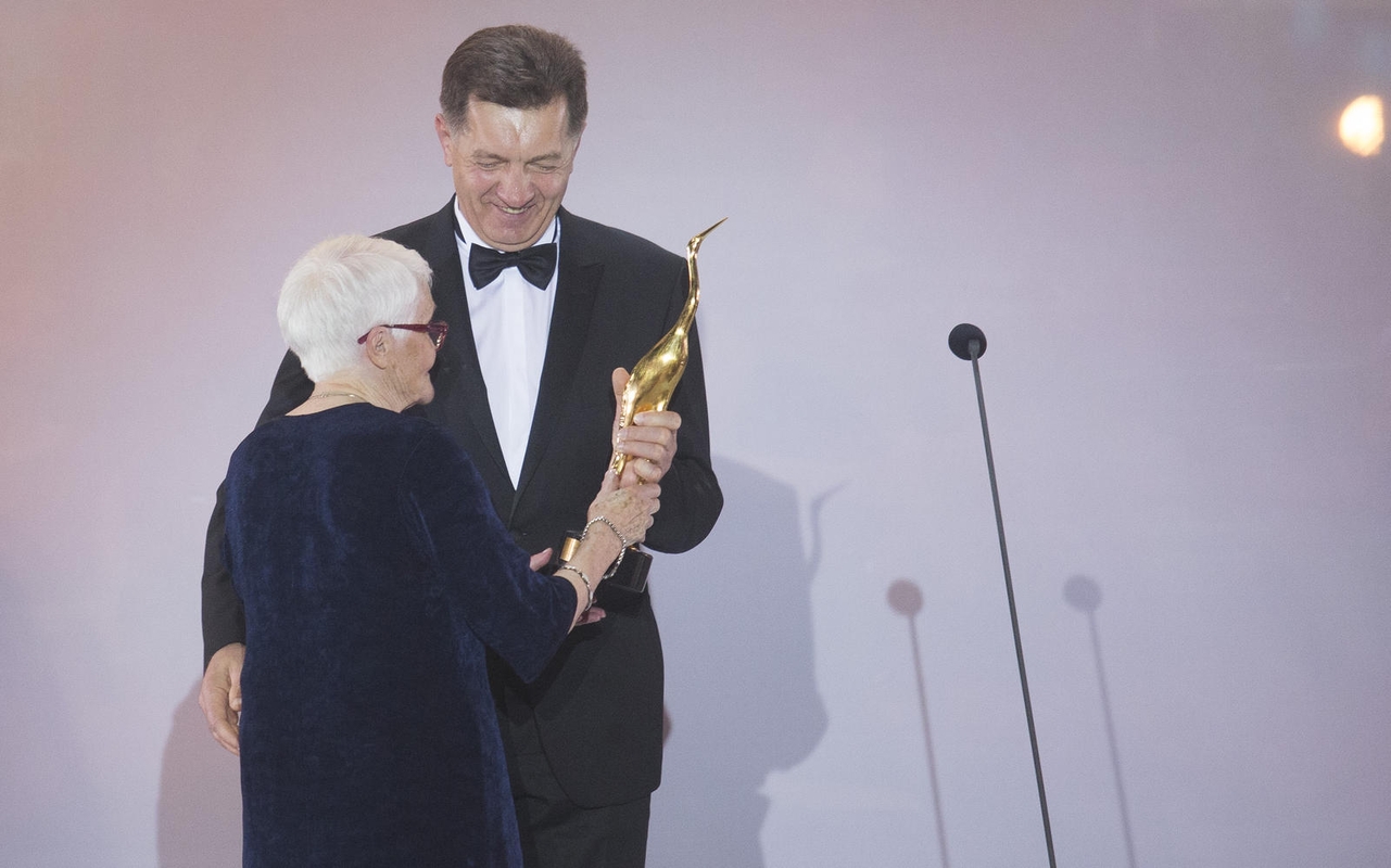 „Auksinę gervę“ montažo režisierei įteikė apdovanojimų globėjas Ministras Pirmininkas Algirdas Butkevičius. Kukli moteris apdovanojimą priėmė drovėdamasi savo pasiekimų ir tikino apie tokį įvertinimą niekada net nesvajojusi.