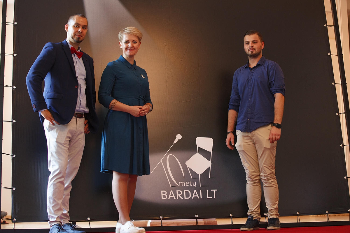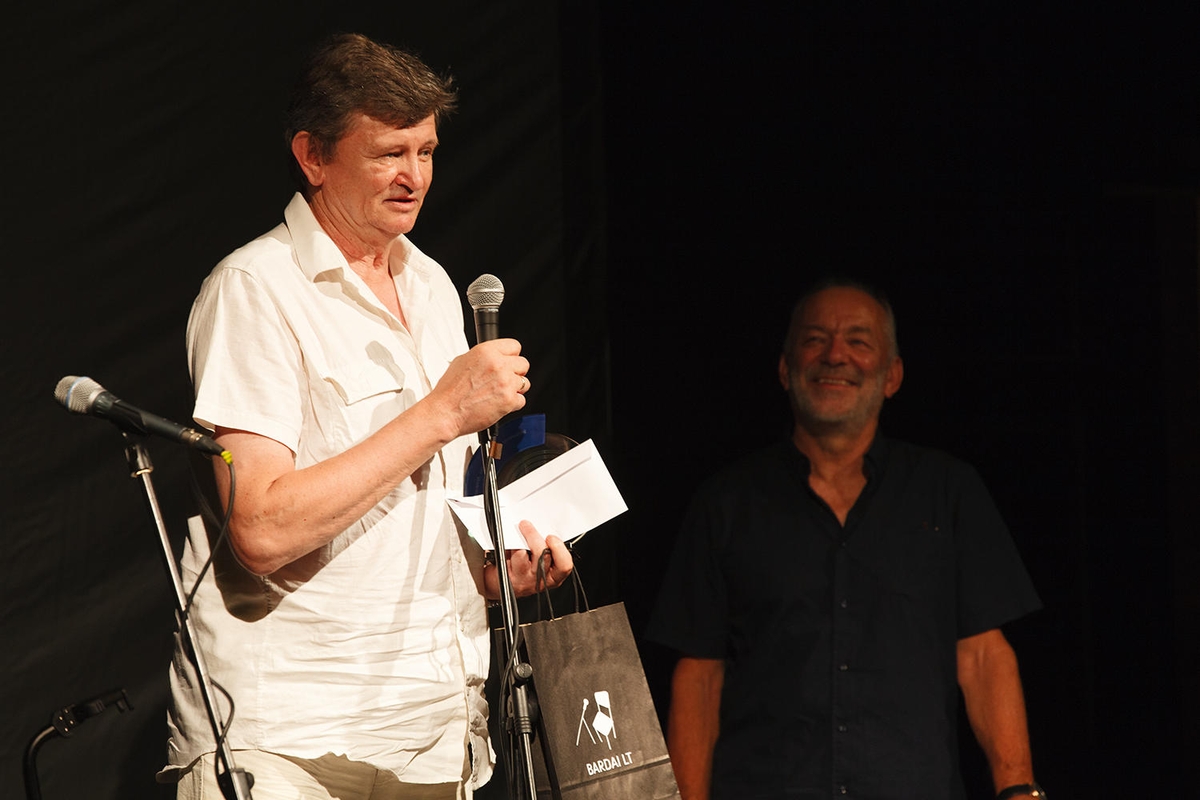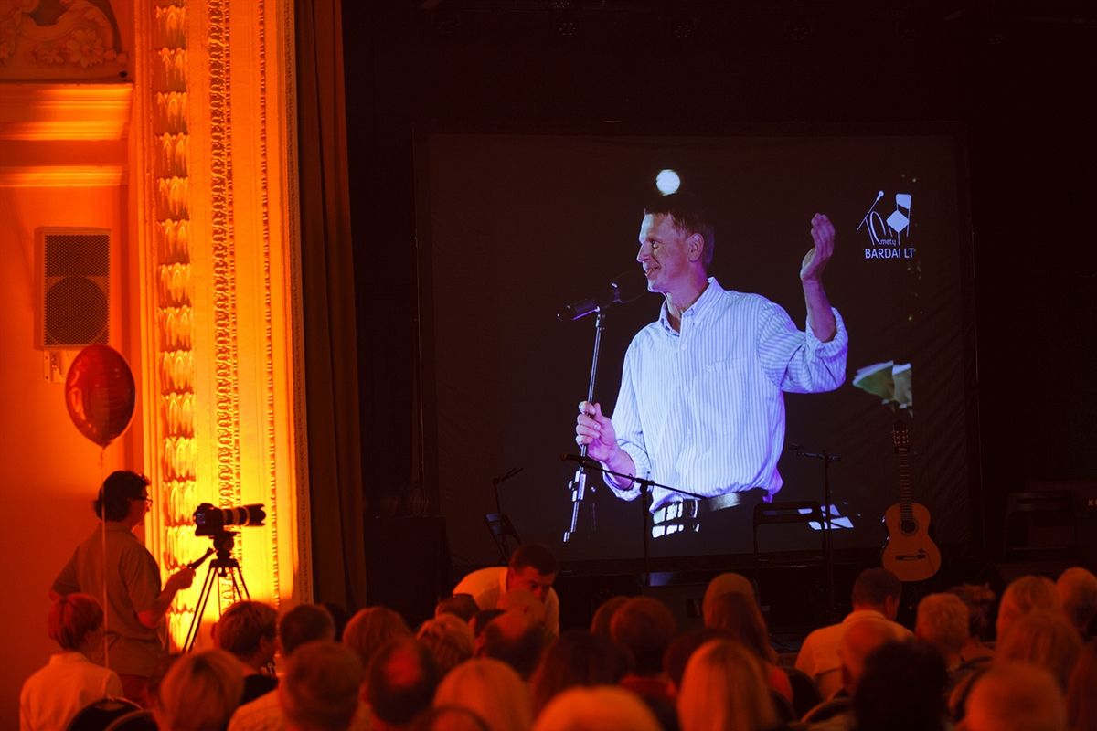 Kūrybiškiausio draugo apdovanojimą gavęs aktorius ir atlikėjas Andrius Kaniava scenoje irgi prisiminė jo ir „Bardai LT” draugystės pradžią. „Tada nešiojau ilgus juodus plaukus”, – juokavo šiandien žilaplaukis bardas.