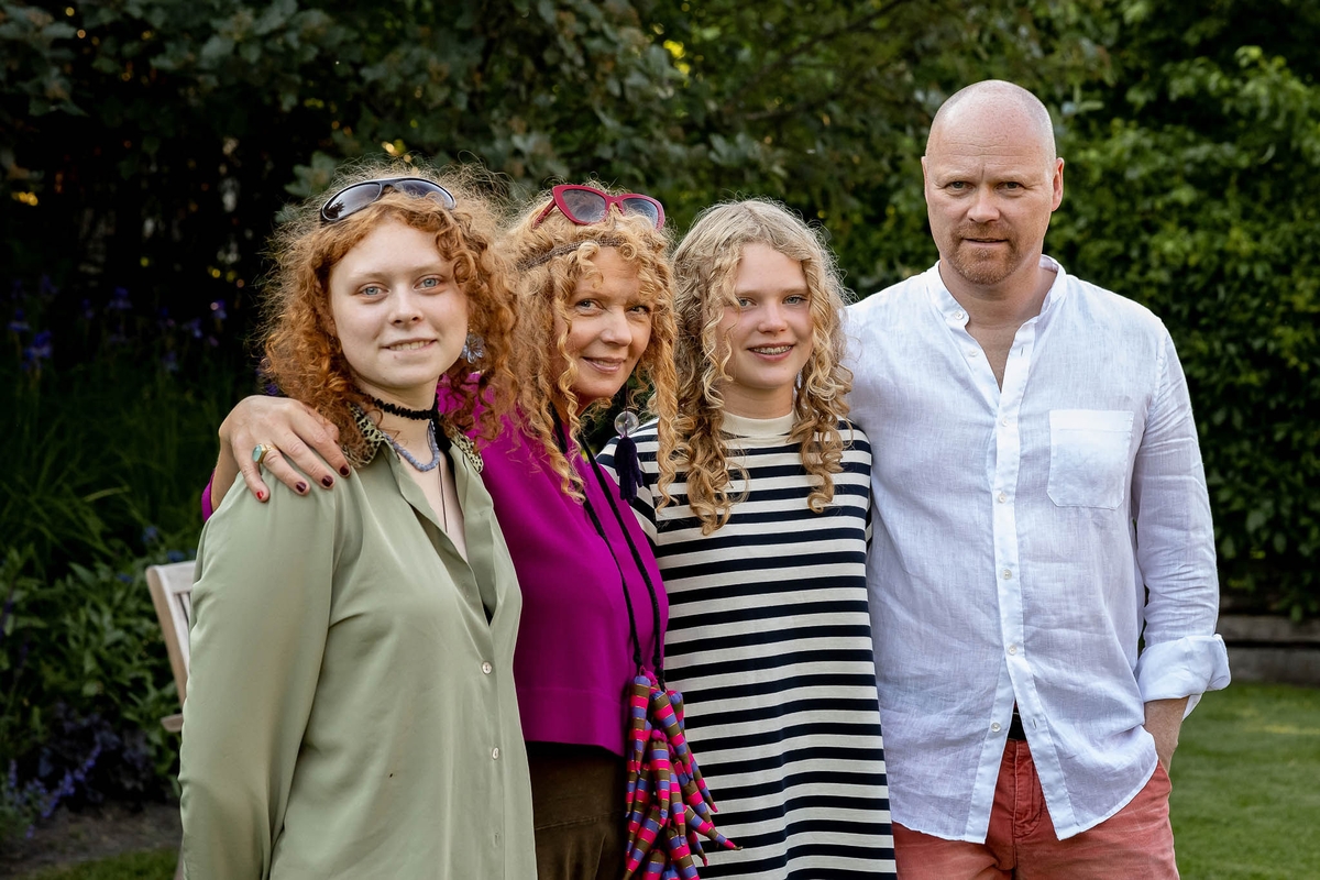 – Tai Teodora – mūsų vidurinioji. Šią vasarą ji įstojo į aktorinį Paryžiuje. Nuo rugsėjo kelsis ten gyventi. Profesija labai sunki, bet mes su Vilmantu nė nebandėme jos atkalbėti. Jauna, graži, išsiskirianti savo išvaizda iš minios, ambicinga – tegul pabando studijuoti tai, ką iš tiesų nori. Vyriausioji Gabrielė gyvena Londone ir dirba kino industrijos kompanijoje grafikos dizainere. Šiais metais ji nuotoliniu būdu apsigynė magistro diplomą Vilniaus dailės akademijoje Tekstilės meno ir dizaino katedroje. Mažiausioji Martyna dar lanko Vilniaus tarptautinį prancūzų licėjų, kurį šįmet baigė ir Teodora. Ji vis kartoja, kad nori turėti gerą darbą ir galėtų būti mano mecenate. Turiu su ja ypatingą ryšį. Martyna mėgsta analizuoti ir mano, ir Vilmanto kūrybą. Vis klausinėja, kodėl sukūrėme taip, o ne kitaip. Ir vis gaili mano kūrinius parduoti, nes mato, kiek jėgų įdedu į savo meną. Dukra stebi visus mano kūrybinius svyravimus ir nuotaikas. Sakau jai, kad kūryba iš tiesų yra kaip skrydis. Menininkui labai svarbu save realizuoti. Jei nepavyksta, būna baisu. Ne visi ir išgyvena.