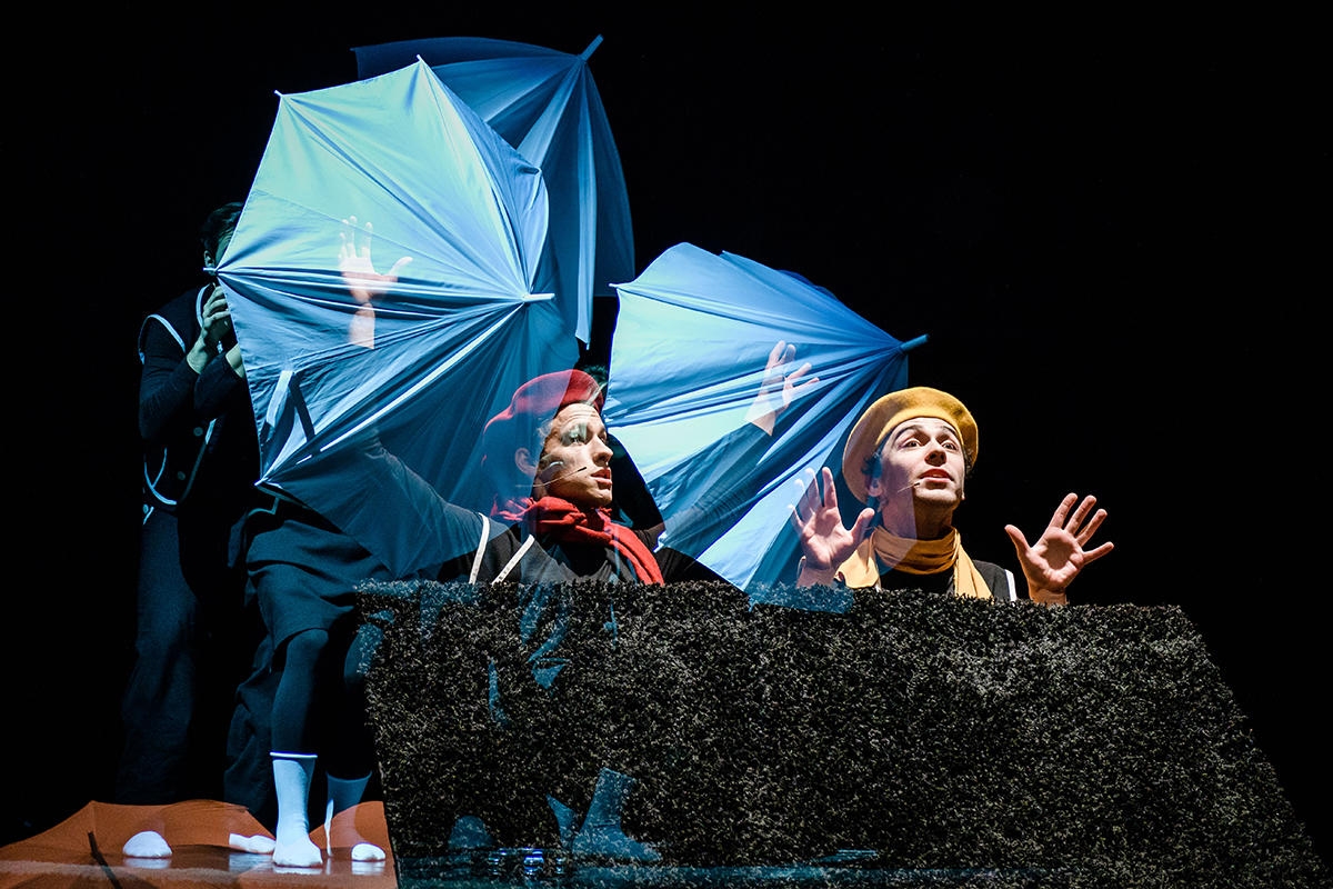 Spektaklis „HOP!” – tai sąmojų ir netikėtumų kupinas muzikinis nuotykis, į rimtus augančios asmenybės klausimus atsakymų ieškantis be banalumo ir didaktikos. Režisierius Aidas Giniotis su spektaklio komanda tyrinėja vaiko fantazijos pasaulį, o jaunieji kūrėjai scenoje pasikliauja augančio žiūrovo sąmoningumu ir įtraukia jį į laisvą, žaismės kupiną šėliojimą. Tokiu būdu spektaklis tampa švente tiek jame vaidinantiems aktoriams, tiek publikai, o puikios emocijos ir kūrybiniai spektaklio sprendimai paskatina mažuosius žiūrovus HOP! sušukti bei paprastų stebuklų ieškoti ir kasdienybėje.
