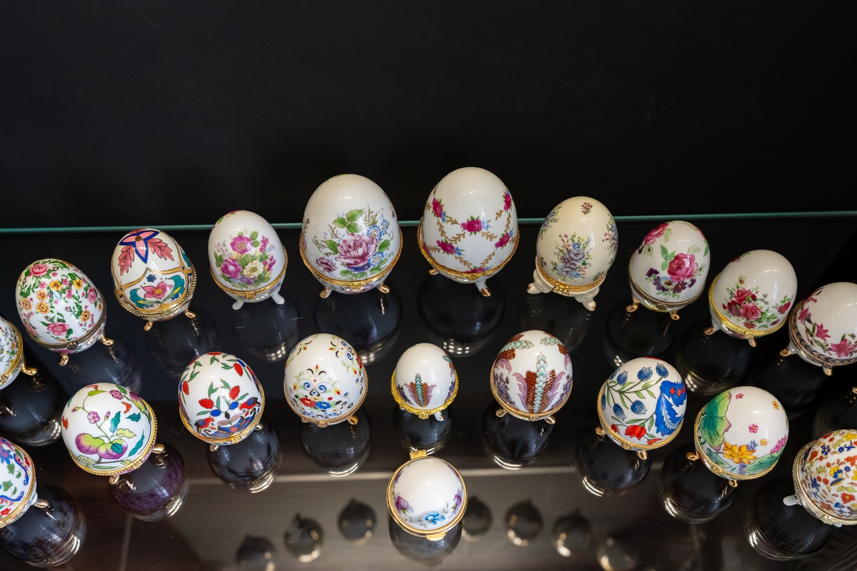 Kolekcininkas pasakoja, kad porcelianiniai kiaušiniai siejami su Peterio Carlo Fabergé asmenybe. Fabergé šeima dėl protestantiškų įsitikinimų XVII a. emigravo iš Prancūzijos į Rusiją. 1846 m. gimė būsimasis juvelyras, kuris studijavo Frankfurte, vėliau sugrįžęs dirbo restauratoriumi Sankt Peterburge, Ermitažo muziejuje. Ten sėmėsi įkvėpimo kurdamas originalius juvelyrinius gaminius.