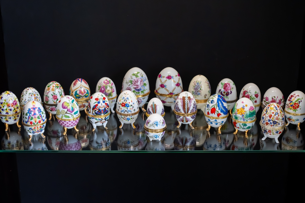 Dabar dauguma porcelianinių kiaušinių yra dovanų dėžutės. Kelių viduje kolekcininkai yra radę raudono aksomo ir įpjovą žiedui ar dar kam nors įdėti. Virginijaus teigimu, tai tiesiog mieli gražūs porcelianiniai suvenyrai, nuo kurių kartkartėmis reikia nuvalyti dulkes.