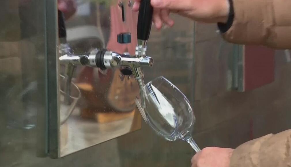 „Turime lentą, duonos ir traškučių. Tereikia įmesti žetoną į viršutinį plyšį ir, dėl saugumo, palaikyti juodą mygtuką – tada aliejus teka į indą. Paimame duonos gabalėlį, šiek tiek pabaksnojame ir galime ragauti“, – pasakojo alyvuogių aliejaus „fontano“ savininkas Patrik Babič.