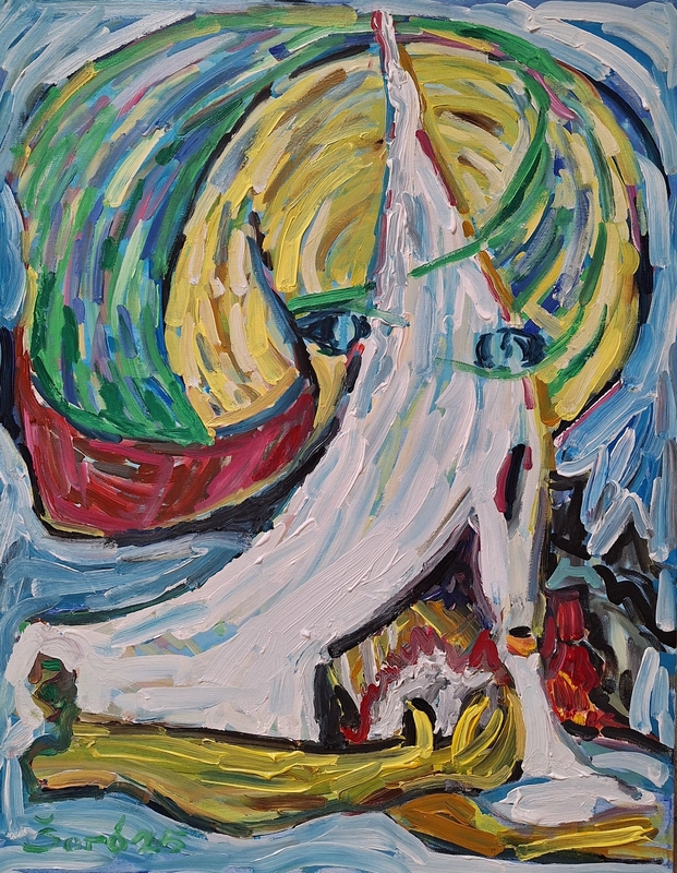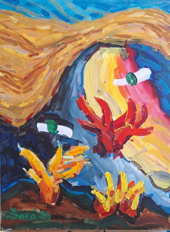 „Turėjau planą nuo 2025 m. pradžios pabaigti su dainomis ir grįžti prie portretų, bet kai su viena moterimi jos portreto tapymą derinome kelis mėnesius, supratau, kad portretus tapyti šiais laikais bus sunku, o gal net neįmanoma“, – dalijasi Šaro. Kodėl? Nes nori tapyti gyvai. Tik tuomet atsiranda tapytojo ir žmogaus santykis.