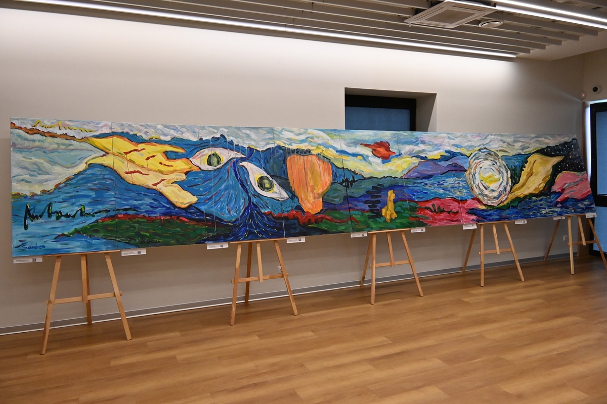 Š. Matijošaitis yra nutapęs arti 100 drobių. Į vieną parodą visų nesutalpinsi, todėl dalį paveikslų eksponuoja tiesiog savo darbe – pastate V. Krėvės prospekte, kur patalpas nuomojasi daug skirtingų firmų. Vienoje iš jų, užsiimančioje renovacijų projektais, statybos darbų vadovu dirba ir pats Šarūnas. Kūrybinį nusiteikimą išduoda šalia darbo stalo stovintis molbertas, išspaustos dažų tūbelės.