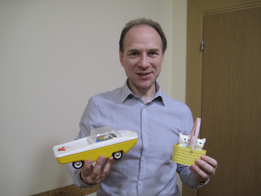 "Idėja kolekcionuoti žaislus gimė internete pamačius savo vaikystės žaislą – amfibiją. Tai toks automobilis, kuris plaukia ir važiuoja sausuma. Aš turėjau raudonos, brolis – mėlynos spalvos, plukdėme mašinėles vonioje. Beje, savąją, nors ir labai pavargusią, vis dar turiu, o internete radau geltoną, bet lygiai tokią pačią – visiškai naują ir dar su dėžute. Tada ir kilo mintis surinkti savo vaikystės žaislus. Pradėjau domėtis žaislų istorija, kaip ir kur įsigyti daugiau. Taip ir prasidėjo", – prisimena pašnekovas.