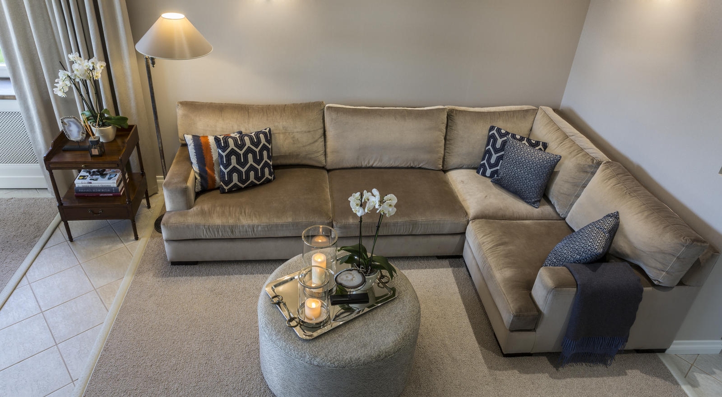 Jei patalpų lubos žemos, sienas nudažykite šviesia spalva, parinkite žemesnius baldus – tai padės sukurti erdvumo įspūdį.