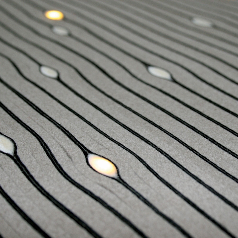 Olandijos dizaino bendrovė sukūrė neįprastus šviečiančius kilimus ir kilimines dangas. Dieną į vilnonio veltinio kilimą integruotos LED lempučių akelės susilieja su jo raštuose dominuojančiais dryžiais, o vakare subtiliai švyti. Galima rinktis elegantišką juodos, baltos ir pilkos spalvos arba gyvesnį ir žaismingesnį, paįvairintą gelsvais ir žalsvais tonais. Dar vienas variantas – visomis vaivorykštės spalvomis mirgantis kilimas arba kiliminė danga su LED inkliuzais.