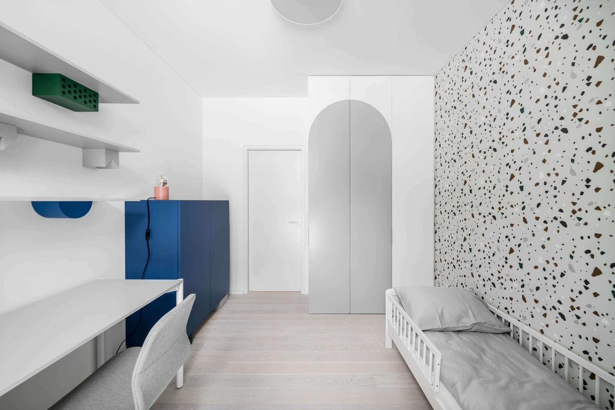 Įspūdis: AKTA studijos (Normundas Vilkas, Dovilė Paunksnytė) sukurta Kauno senamiestyje esančio buto erdvė vizualiai padalyta į bendrąją ir poilsio zonas. Svetainė nuo miegamųjų atskirta juodos spalvos tūriu – koridoriumi ir virtuvės baldu. Pilkame sienų ir betono grindų fone ryškų interjero charakterį kuria intensyvaus kolorito baldai ir dekoro elementai.