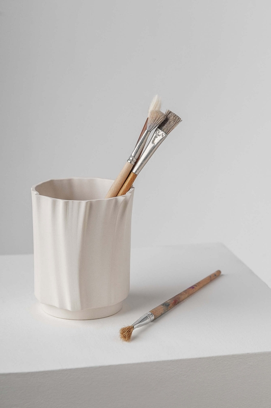 Žaismas: Evelinos Kudabaitės keraminis indas "Shiver", pagamintas "Immix", gali virsti ir vaza, ir pieštukine, ir žvakide ar kitokią paskirtį atliekančiu tūriu. Lengvai krentančios šilko klostės ir žvilgesys – pagrindinė estetinės išraiškos inspiracija. Tai dviejų materijų žaismas, objektas, sujungiantis lytėjimo ir kvapų pasaulį.