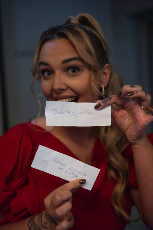 „Aš ištraukiau lapelį, ant kurio buvo parašyta, kad reikia prigulti ant komisijos stalo. Mane ši užduotis taip išmušė iš vėžių, kad nebegalvojau apie dainos atlikimą. Galvojau tik, kada reikės eiti prigulti ant to stalo. Bet visai pavyko, mačiau, kad Vytautui Lukočiui labai patiko“, – atskleis Laisva.