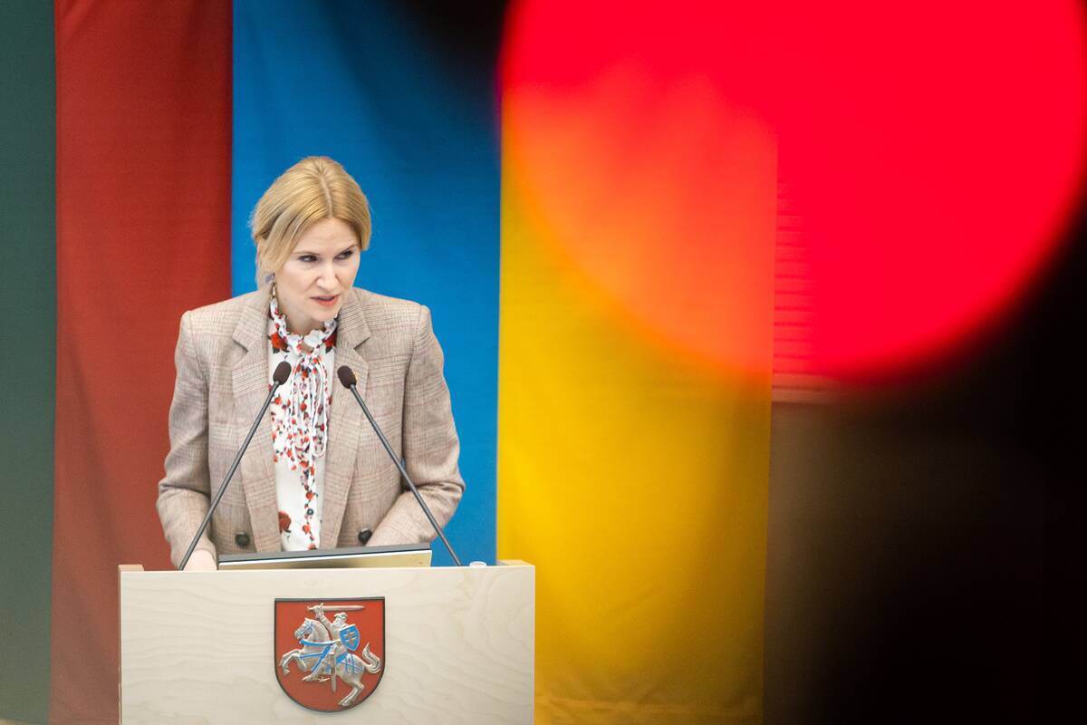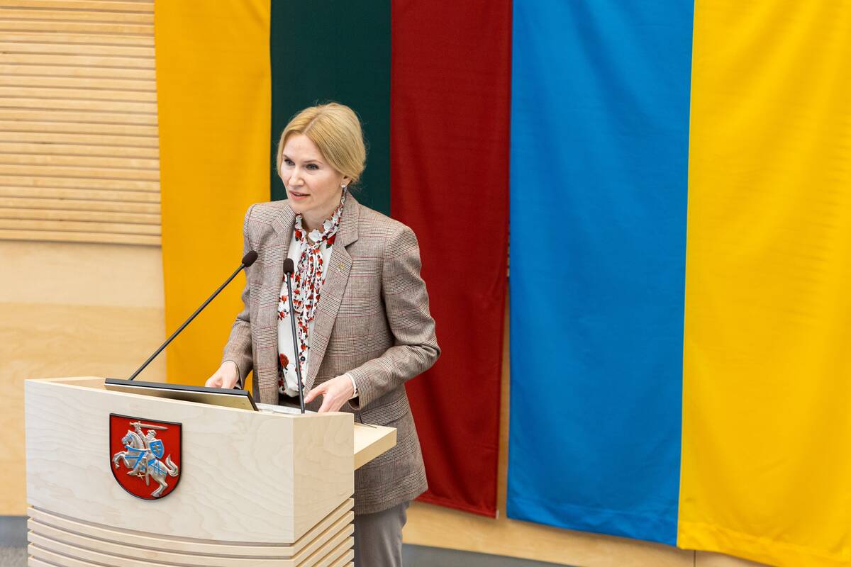 Ji į Lietuvos parlamentą kreipėsi ukrainietiškai, pažymėjusi, kad tai kalba, kuri „greitai taps viena iš oficialių Europos Sąjungos kalbų“.